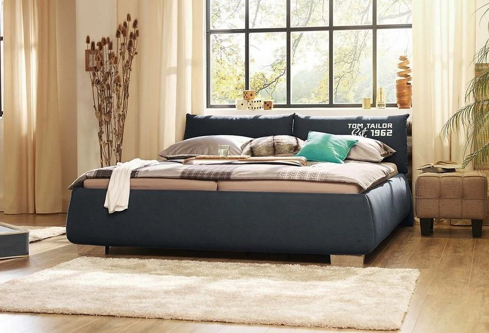 - Trendiges Polsterbett mit modischem »TOM TAILOR« Print auf dem Kopfteil