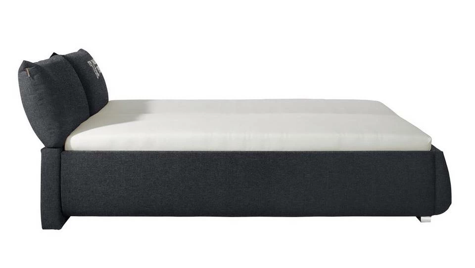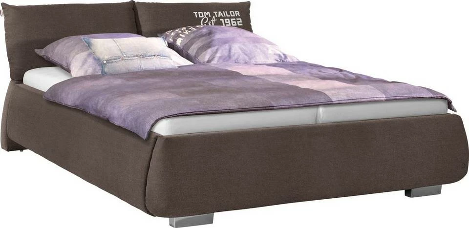 Komfortables Polsterbett »SOFT PILLOW« mit formschönem Bettgestell und Kopfteil in Kissenform. Alle Bezüge wahlweise mit oder ohne »TOM TAILOR« Aufdruck, Kunstleder immer ohne Aufdruck. Das Bett ist erhältlich in 5 Breiten und 2 Varianten (wahlweise inklusive Lattenrost und Matratze). Bettrahmen und Kopfteil sind stoffbezogen. Füße: Kunststoff/Chrom.