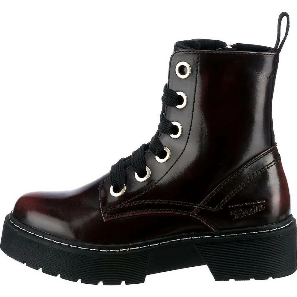 – Fersenpartie verstärkt – angenehm anpassungsfähiges Polyester-Futter – gute Anpassung durch den Schnürverschluss Die modisch aktuellen Schnürstiefeletten aus dem Hause TOM TAILOR unterstreichen unterschiedliche Outfits. Der bequeme Blockabsatz bietet einen ansprechenden Look. Eine individuelle Fußanpassung ist durch den Schnürverschluss ganz einfach. Das textile Futter bestehend aus Polyester passt sich gut an den Fuß an und ist zugleich anschmiegsam. Verschluss: Schnürverschluss Schafthöhe: 14,5 cm Schaftweite: 11,2 cm Absatzart: Blockabsatz Absatzhöhe: 1 cm Schuhweite: E Obermaterial: Sonstiges Material (PU) Futter: Textil (Polyester) Decksohle: Textil (Polyester) Laufsohle: Sonstiges Material (TPR)