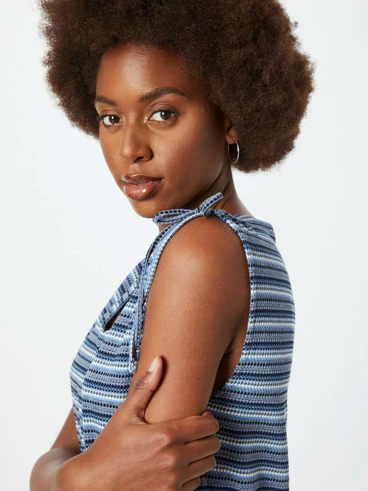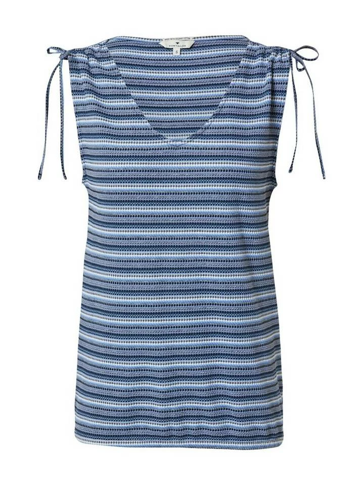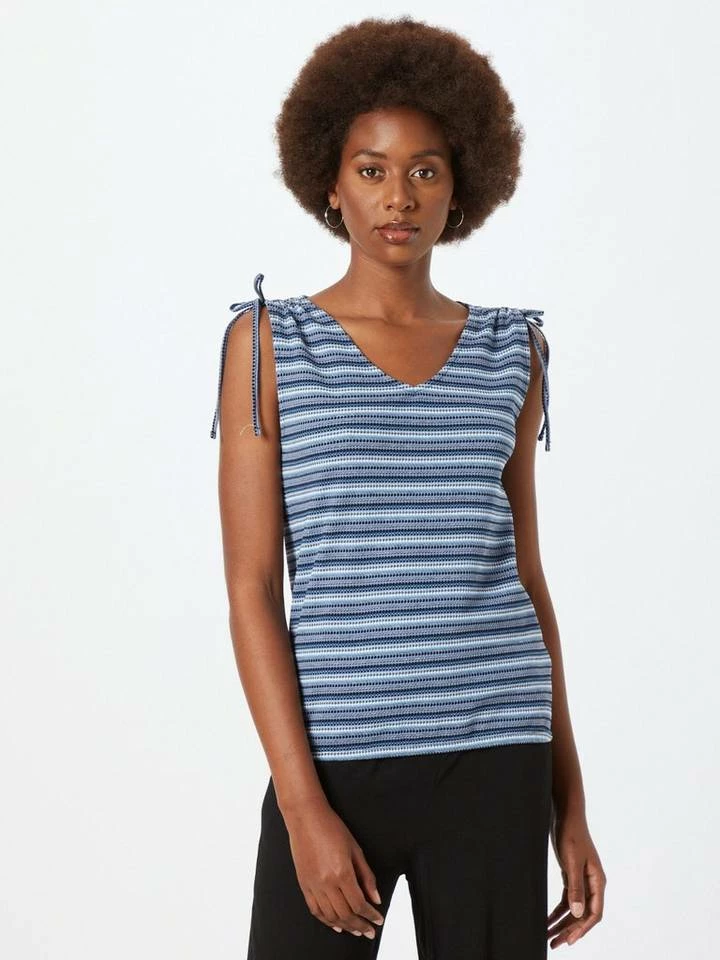 Gestreiftes Top mit Bio-Baumwolle für Frauen (ärmellos mit V-Ausschnitt) mit Bio-Baumwolle aus nachhaltigem Anbau, gestreift, mit Tunnelzug an Saum und Schultern