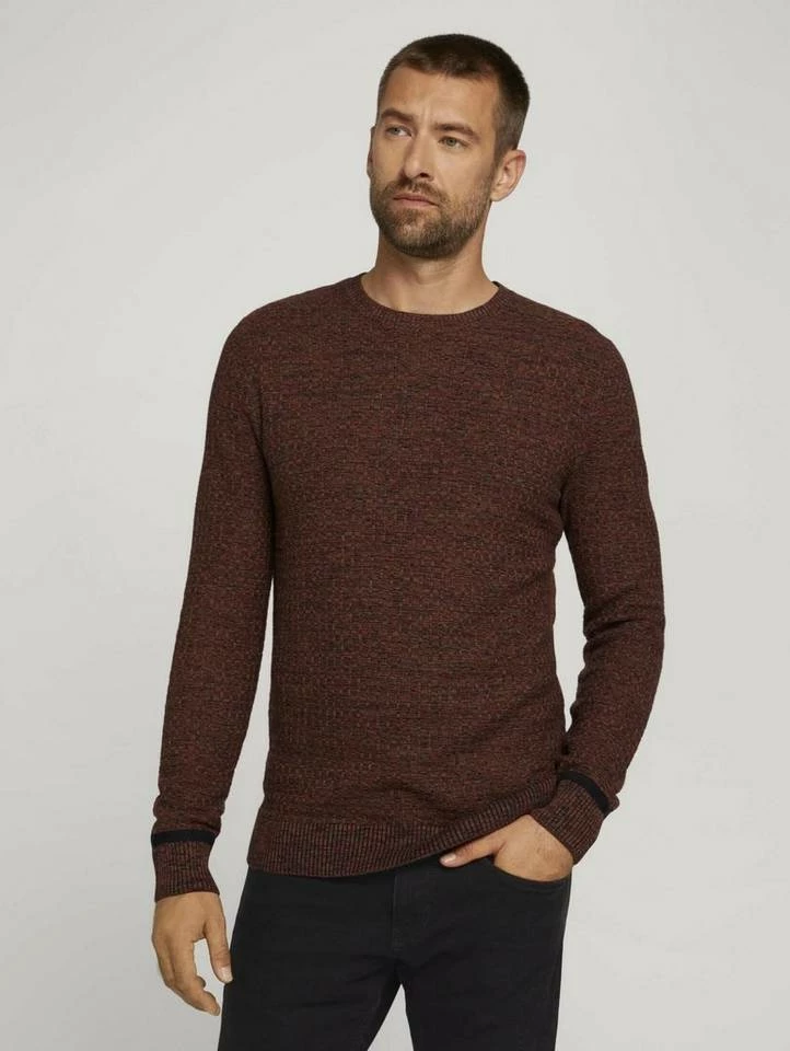 Pullover aus Bio-Baumwolle für Männer (langärmlig mit Rundhalsausschnitt) aus atmungsaktiver und weicher Bio-Baumwolle, strukturiert, mit gerippten Saumkanten