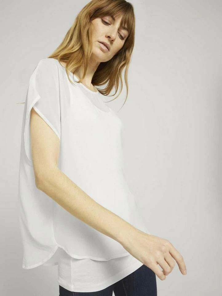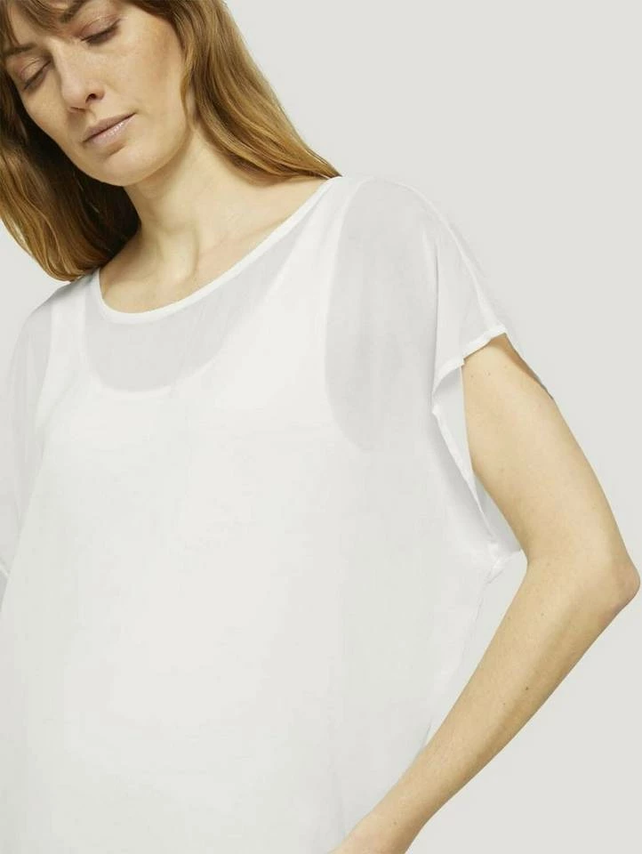 Shirt mit Chiffon für Frauen (kurzärmlig mit Rundhalsausschnitt) Top aus dehnbarem und bequemen Jersey, fließender Chiffon Überzug, fixierte Seiten