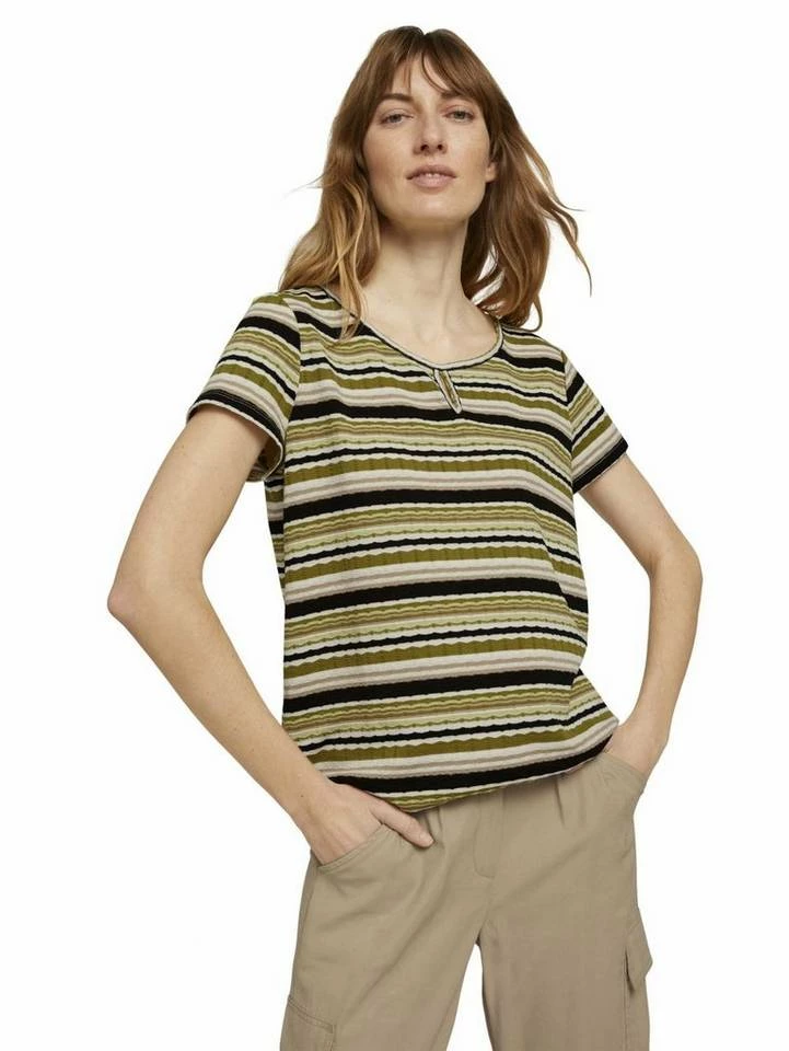 Schlussverkauf 🔔 TOM TAILOR Blusenshirt mit Rüschendetails Schwarz, Dunkelgrün, Hellbeige 😉