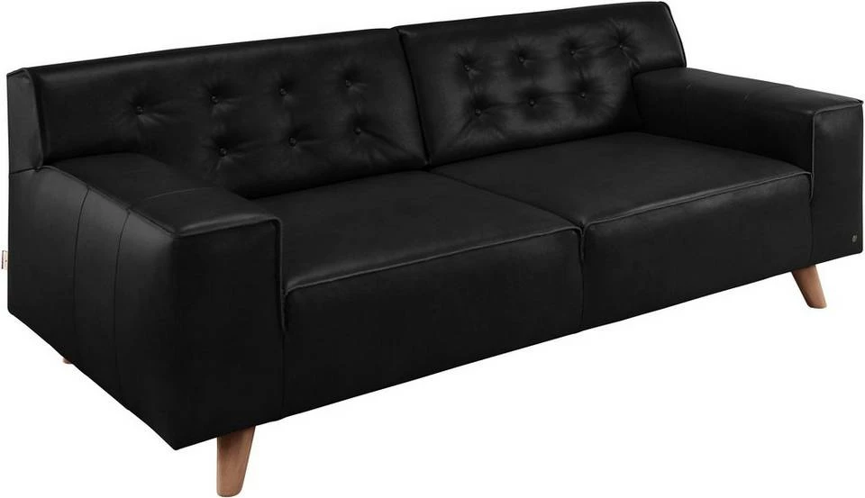 Für einen Hauch von Vintage in der Einrichtung sorgt dieses 2-Sitzer Sofa »NORDIC CHIC« von TOM TAILOR mit dekorativer Kedernaht. Es begeistert im modischen Retrostil und steht in trendigen Farben zur Auswahl. Zum optischen Hingucker wird die Couch dank ihrer schönen Knöpfung und der dekorativen Kedernaht. Auffällige Holzfüße unterstreichen das geschmackvolle Design. Durch seinen Rundumbezug lässt sich das Sofa ganz nach persönlichem Geschmack frei im Raum aufstellen. Die Polsterung aus Polyätherschaum sorgt für einen hervorragenden Sitzkomfort. Hergestellt wird die erstklassig verarbeitete Polstercouch mit Bezügen aus hochwertigem Leder und Füßen aus Massivholz. Überzeugt durch seine moderne Vintage-Optik und eine ausgezeichnete Qualität: das 2-Sitzer Sofa »NORDIC CHIC« von TOM TAILOR mit dekorativer Kedernaht.