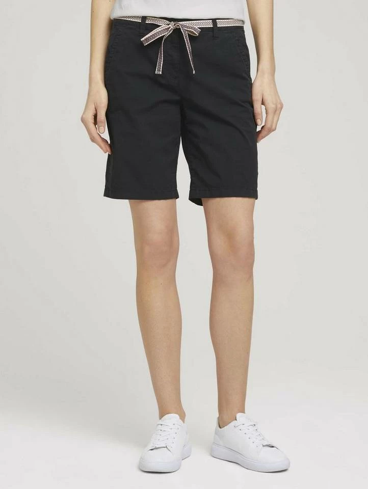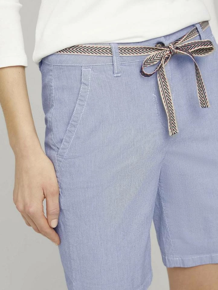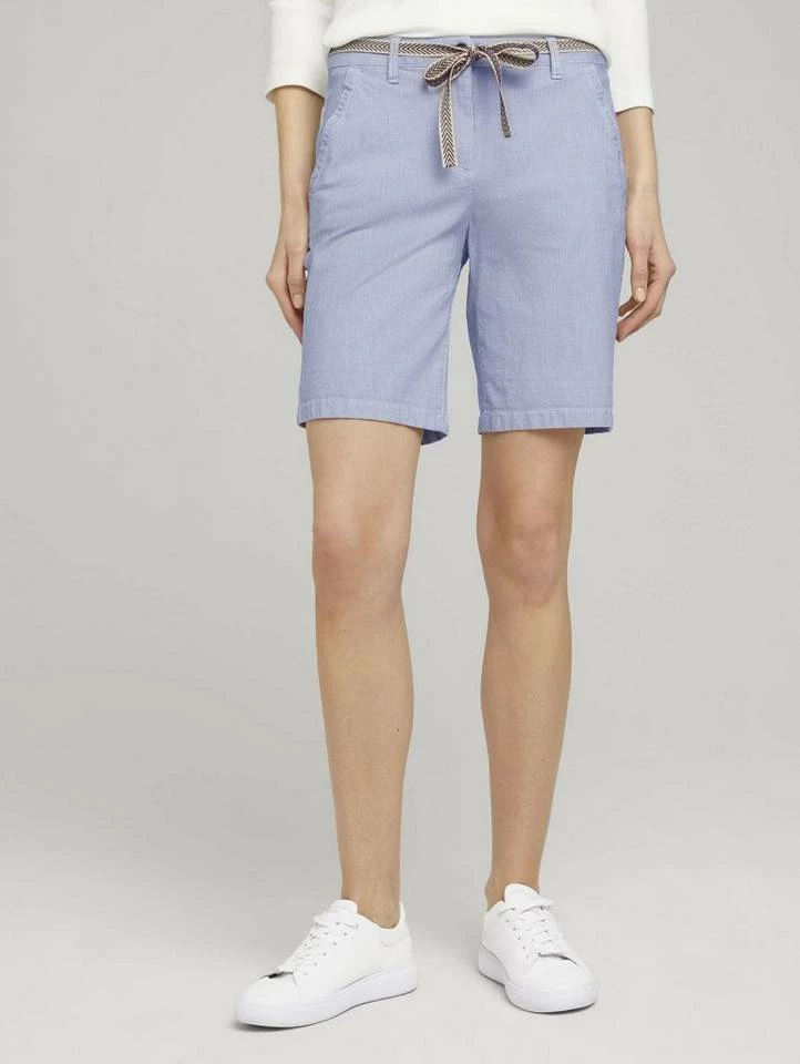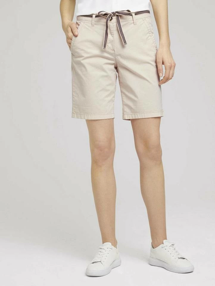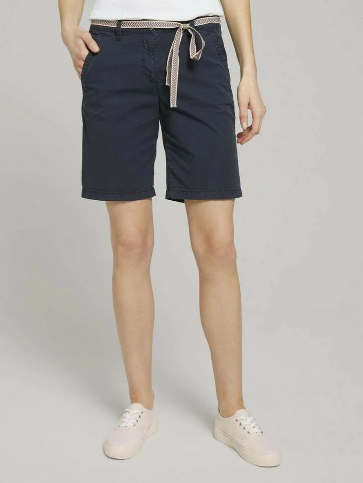 Chino Bermuda Shorts mit Gürtel für Frauen (mit Reißverschluss und Knopf) aus dehnbarem und strukturiertem Twill, seitliche Eingrifftaschen, inklusive Bindegürtel