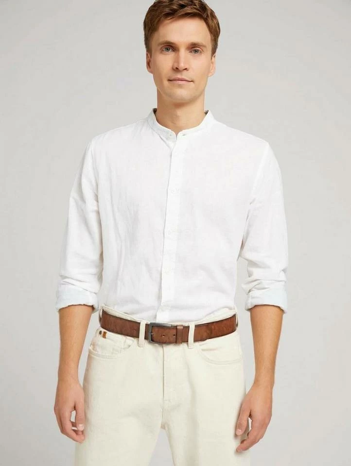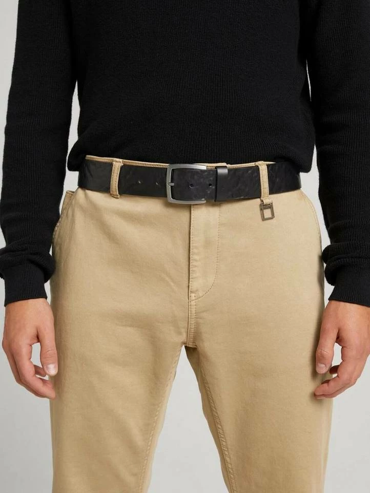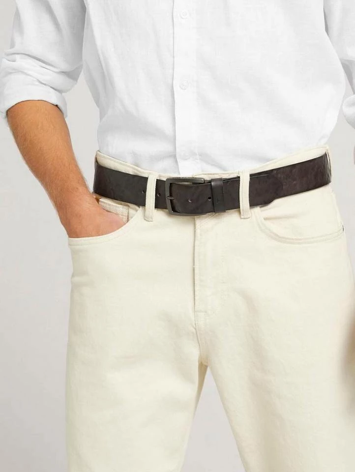 Geprägter Ledergürtel für Männer (mit eckiger Dornschließe) aus geprägtem Leder, Gürtelbreite ca. 4cm, mit Logoprägung auf der Gürtelschlaufe