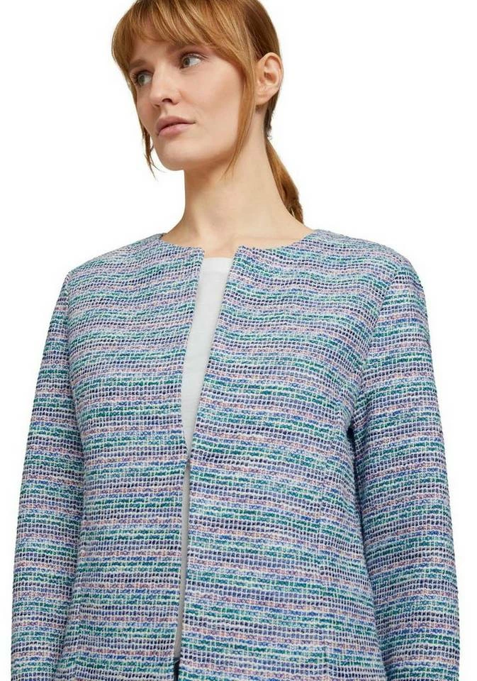 Der strukturierte Kurzblazer von Tom Tailor bringt garantiert Pfiff in deine Outfits. Sein kragenloser Schnitt mit formgebenden Teilungsnähten ist feminin tailliert. Vorn ist er mit einem dezenten Hakenverschluss versehen. Einen angenehmen Tragekomfort liefert dir seine effektvoll gewebte und melierte Boucléqualität. Damit kannst du coole Casualoutfits sehr stilvoll abrunden. Ideal, wenn du das Besondere magst – der schöne Kurzblazer von Tom Tailor!