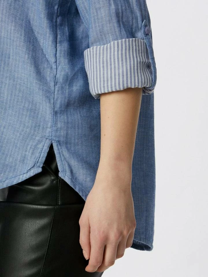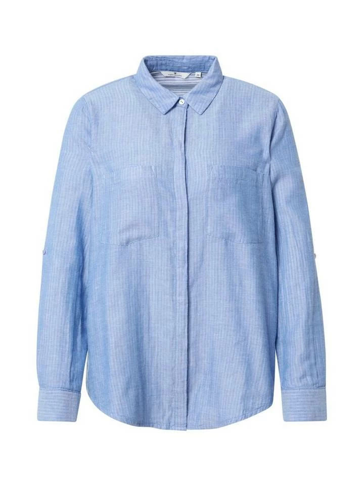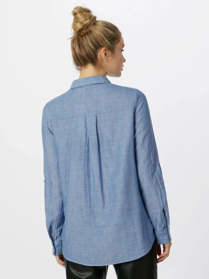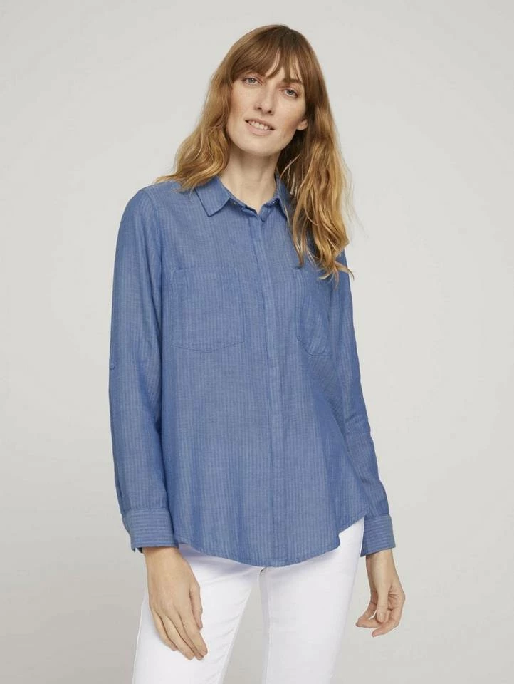 Hemdbluse mit Turn-Up Ärmel für Frauen (langärmlig mit Kentkragen und verdeckter Knopfleiste) aus weicher und atmungsaktiver Baumwolle, Lange Ärmel mit Turn-Up-Option, in Melange Optik, mit aufgesetzten Brusttaschen, mit Seitenschlitz