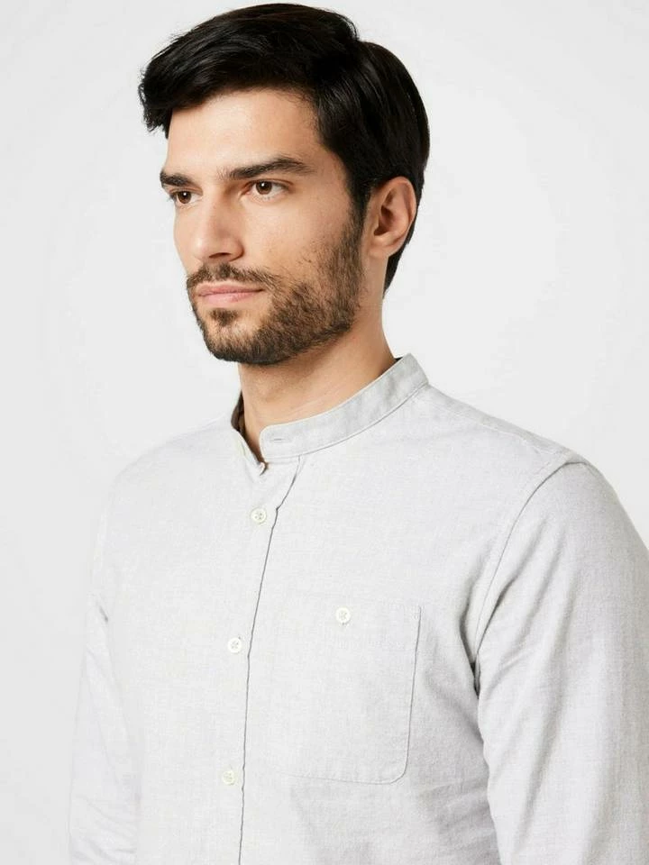 Stehkragenhemd mit Brusttasche für Männer (langärmlig mit Stehkragen und Knopfleiste) aus weichem und atmungsaktivem Baumwoll-Flanell, mit Brusttasche