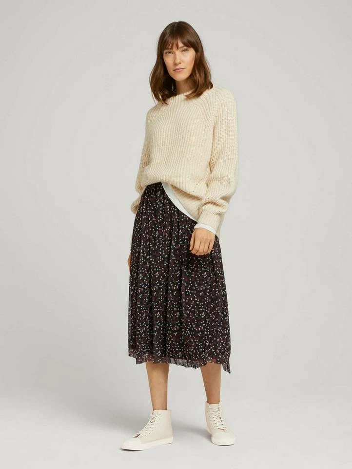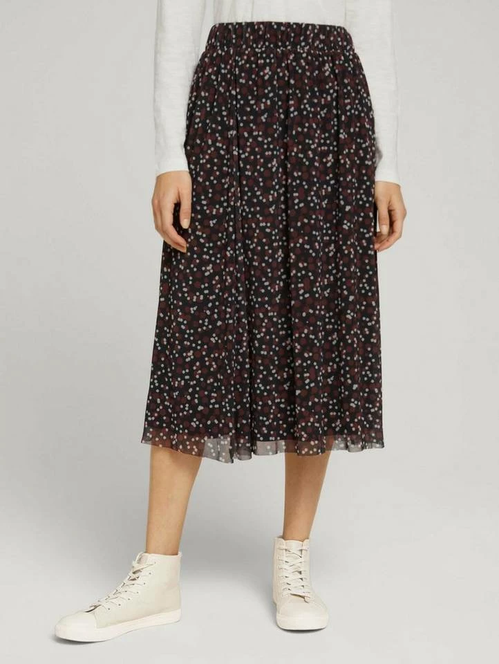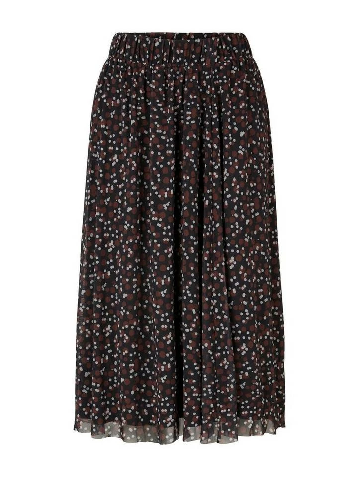 Gemusterter Midirock für Frauen (mit elastischem Bund) aus luftigem und knitterarmen Mesh, gemustert, mit Unterrock