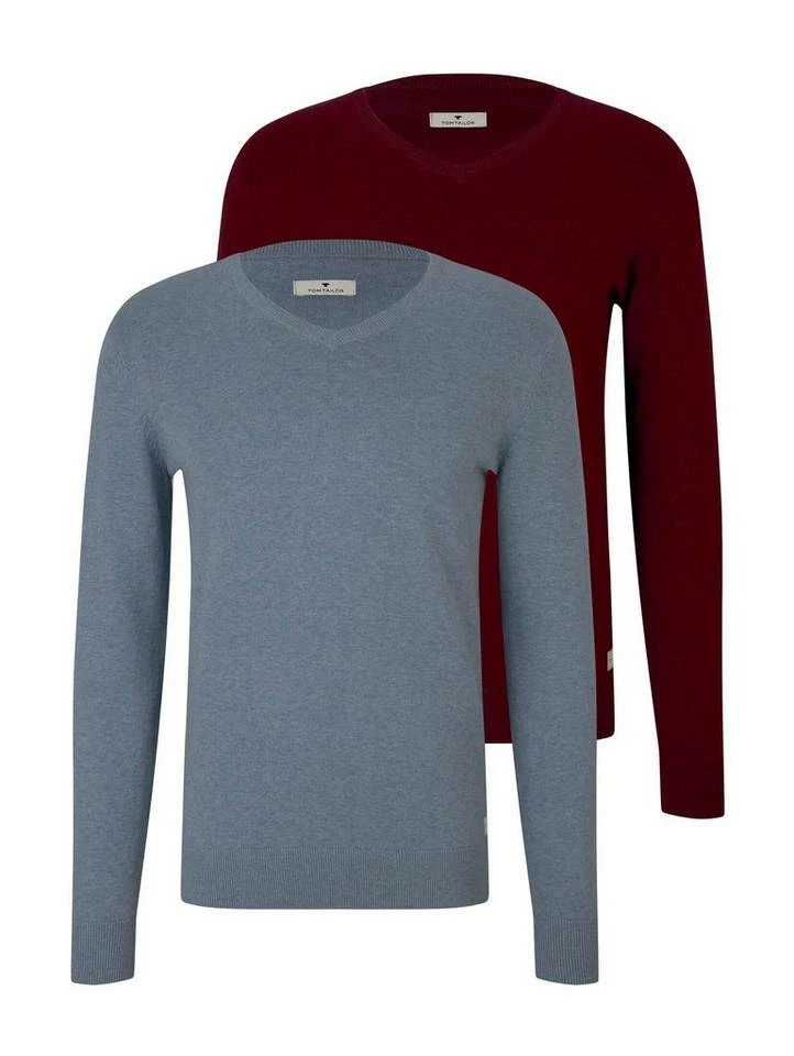 Sweatshirt im Doppelpack für Männer (langärmlig mit V-Ausschnitt und Rippbündchen) aus weichem Baumwollgemisch, strukturiert, unifarben