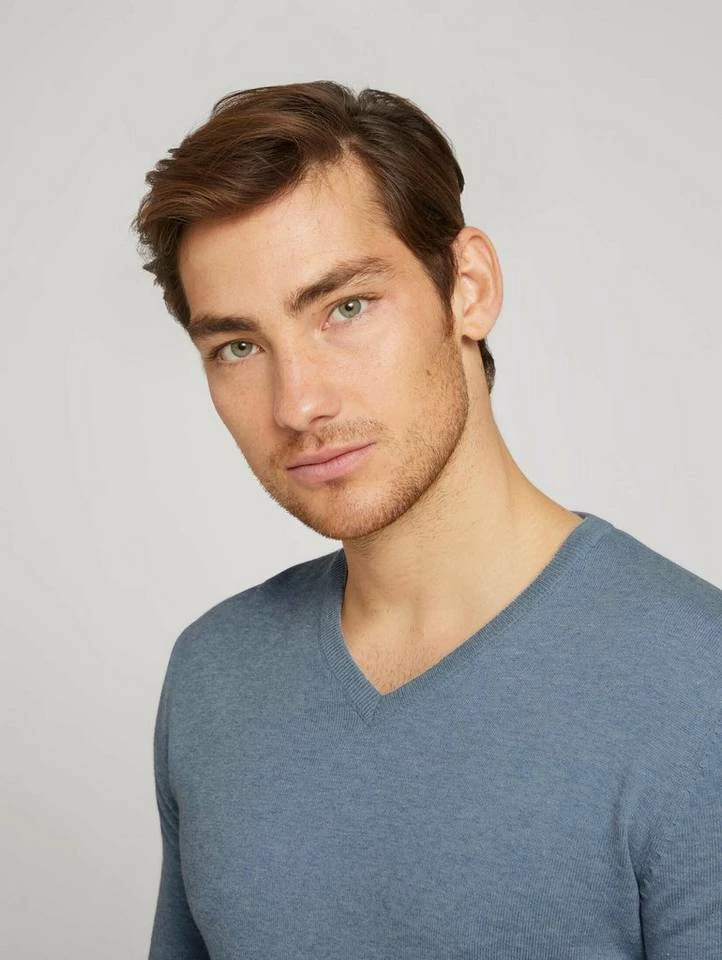 - Langärmlig mit V-Ausschnitt und Rippbündchen