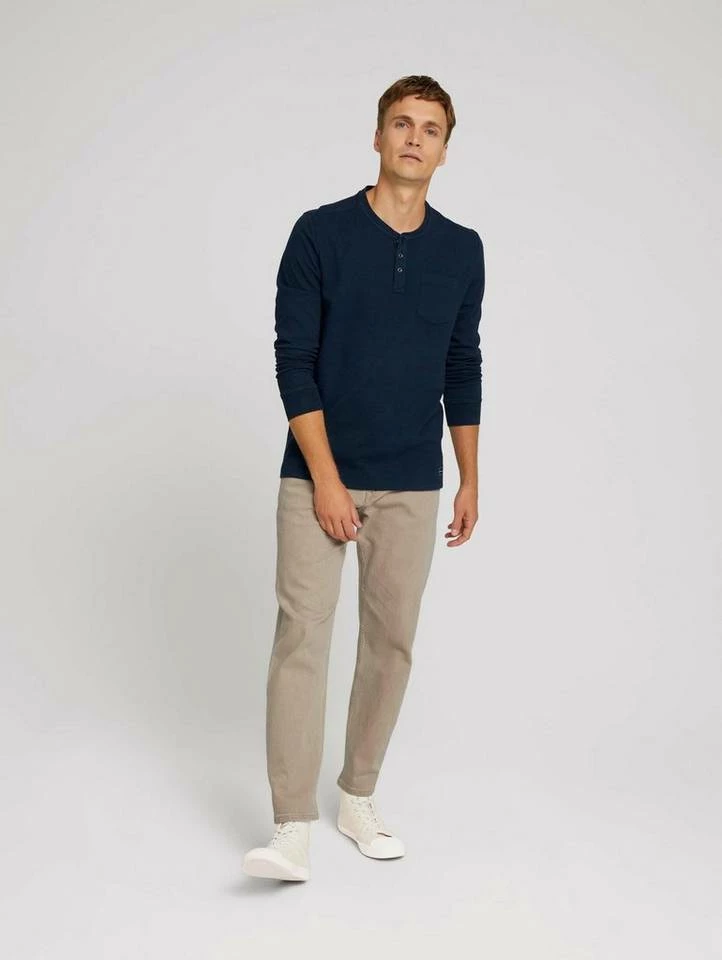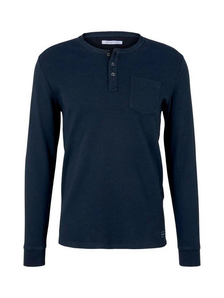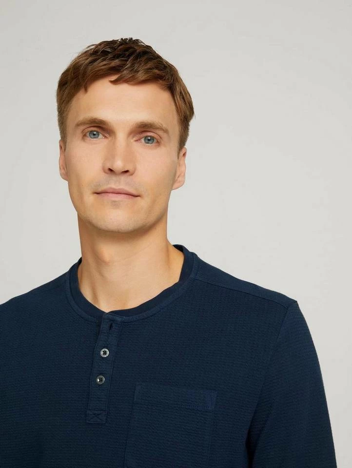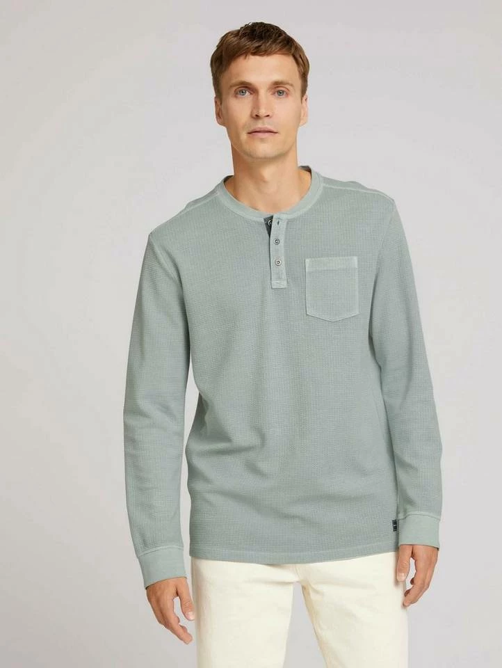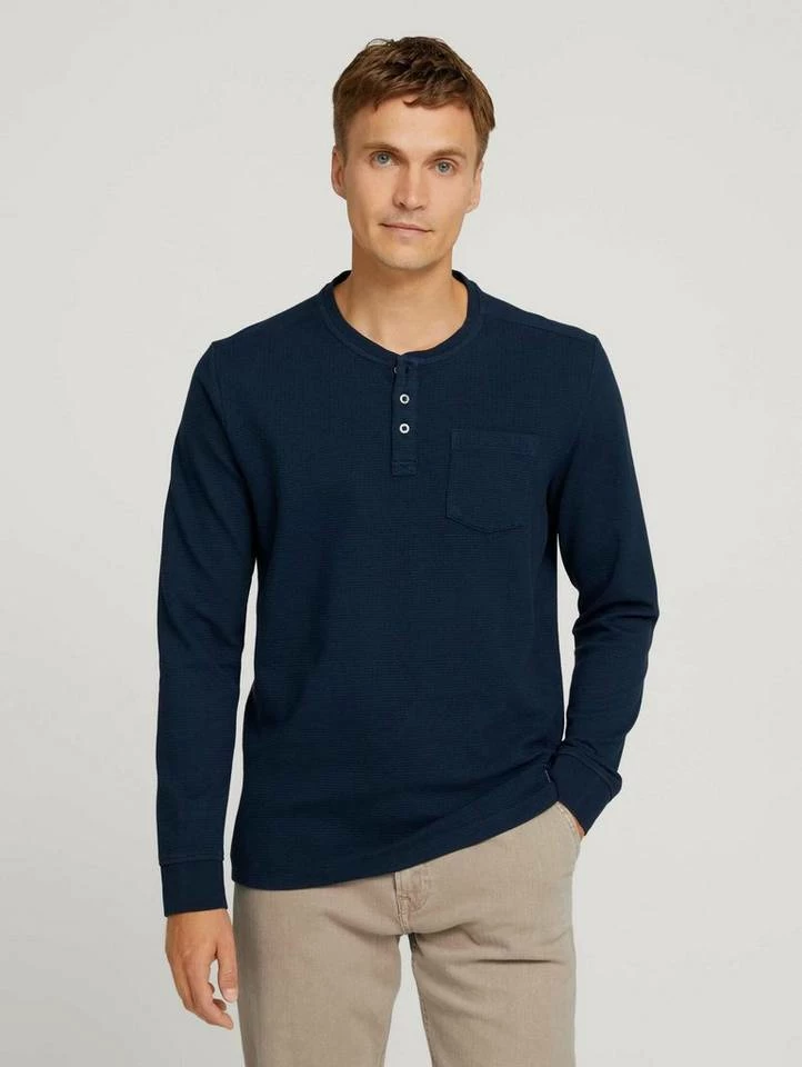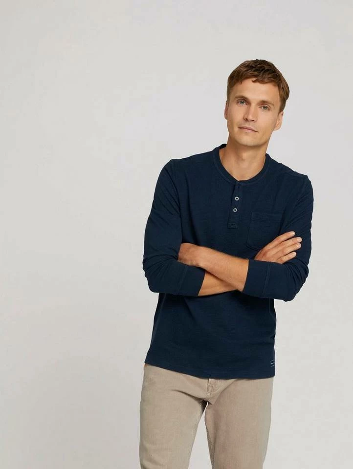 - Langärmlig mit Henleykragen und halber Knopfleiste