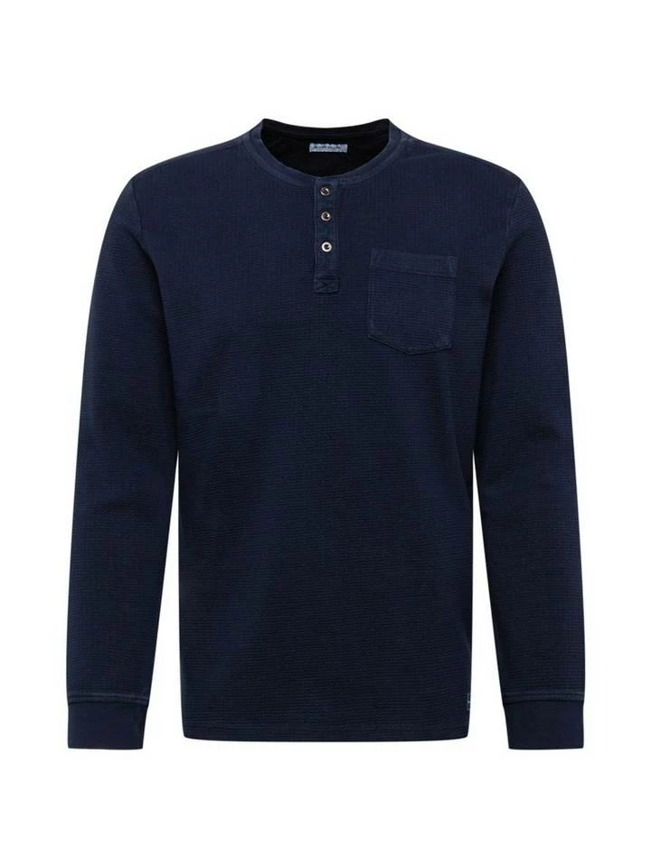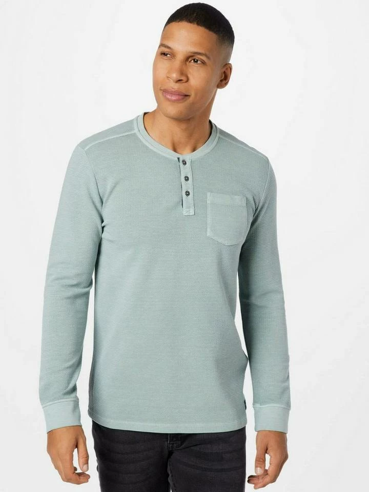 Langarmshirt mit Brusttasche für Männer (langärmlig mit Henleykragen und halber Knopfleiste) aus weichem Baumwollgemisch, in leichter Waschung, mit aufgesetzter Brusttasche, mit geripptem Ärmelsaum