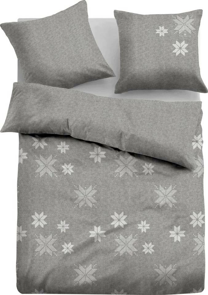 Für weihnachtliche Gemütlichkeit "made in Germany" sorgt die kuschelige und wohlig warme Flanell Bettwäsche »Silas«. Ihr tolles, winterliches Design macht die Bettgarnitur zum Hingucker im jedem Schlafraum. Die Melange-Bettwäsche ist hautfreundlich, fühlt sich angenehm weich an und unterstützt einen erholsamen Schlaf. Durch den Anteil von 60% recycelter Baumwolle, anstelle von reiner Baumwolle, wird "Silas" nachhaltig produziert, da weniger Wasser, Energie und Farbstoff benötigt werden. Zudem punktet sie mit pflegeleichten Eigenschaften, wie Maschinenwaschbarkeit bei 60°C und Trocknereignung. Bügeln ist nicht notwendig. Reißverschlüsse erleichtern das schnelle Wechseln nach jeder Wäsche. Die attraktive TOM TAILOR Bettwäsche »Silast« mit einem schönen, winterlichen Motiv sorgt für mehr Gemütlichkeit im heimischen Schlafzimmer.