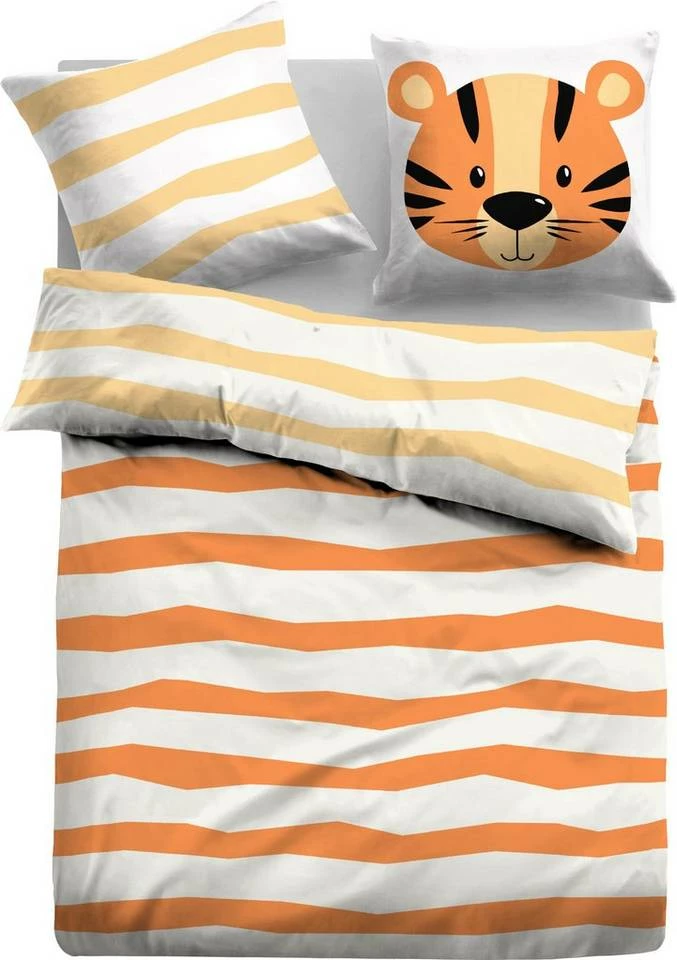 Ein toller Hingucker im Kinderzimmer: die lustige Kinder+Jugendbettwäsche »kleiner Tiger« der Marke TOM TAILOR. Neben seiner interessanten Optik, vor allem im Kissenbezug, zeichnet sich die hochwertige Linon Bettgarnitur durch hohe Qualitätsmerkmale aus. Sie ist aus einem atmungsaktiven, ökologisch unbedenklichen und hautfreundlichen Material gefertigt. Pflegeleichte Eigenschaften sorgen dafür, dass die Bezüge bei bis zu 60°C in der Waschmaschine gereinigt und anschließend in den Trockner gegeben werden können. Mit praktischen Reißverschlüssen ausgestattet: die strapazierfähige Linon Bettwäsche "kleiner Tiger" aus dem Hause TOM TAILOR.