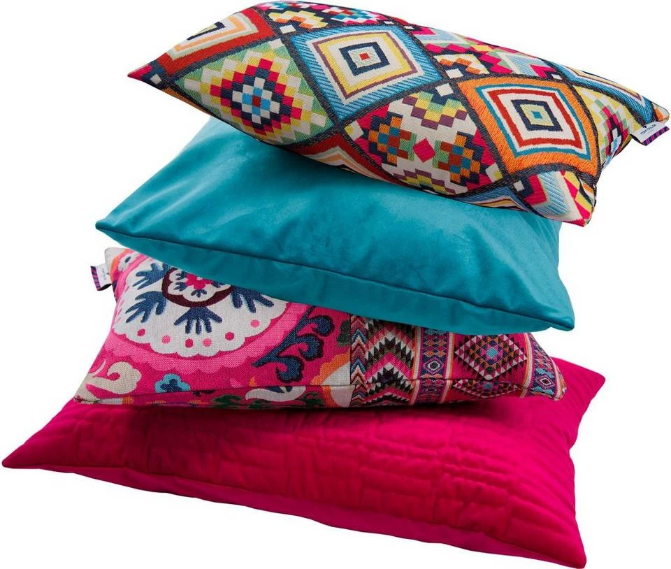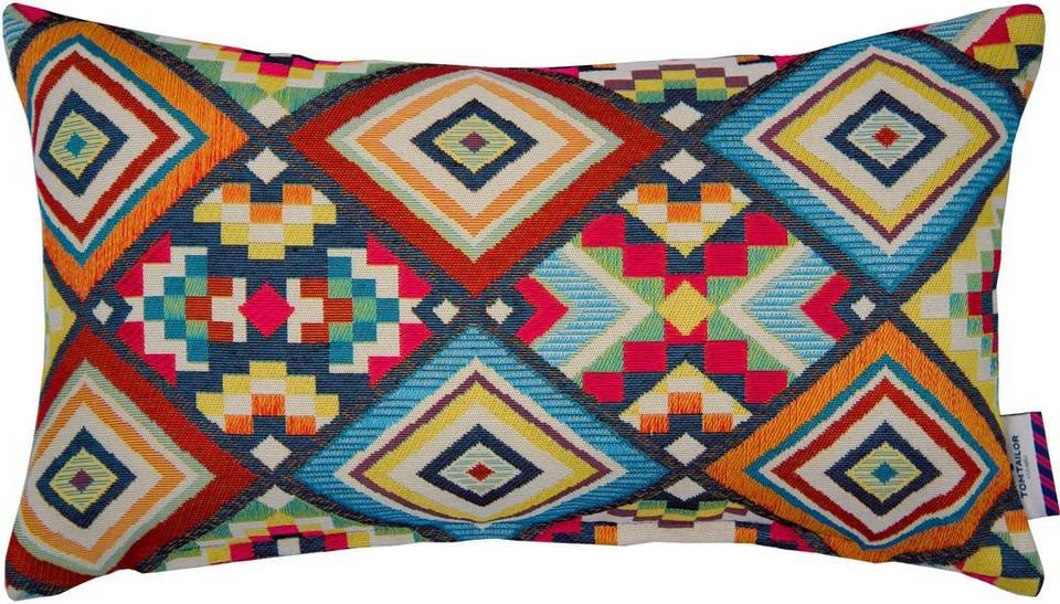 Einzigartig schön präsentiert sich die Kissenhülle Funny Ethno aus der Tom Tailor Kollektion. Das hochwertige Webmotiv in trendigem Retro Look und bunter Farbbrillanz zieht alle Blicke auf sich.