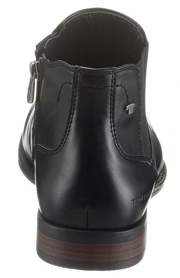 Wer einen modischen und gleichzeitig bequemen Schuh sucht hat mit den tollen Chelseaboots von Tom Tailor genau den richtigen Schuh gefunden. Obermaterial aus Lederimitat macht den Schuh zu einem wahren Allrounder, denn es sieht klasse aus, ist pflegeleicht und robust. Durch das Innenmaterial aus Textil sind die Füße bequem und weich gebettet. Ein Reißverschluss und der flexible Stretch-Einsatz sorgen für eine gute Passform und ermöglichen ein leichtes Einsteigen in den Schuh. Auch lange und laufintensive Tage sind mit dem robusten Schuh kein Problem, denn die bequeme und tragefreundliche Synthetiklaufsohle sorgt rund um die Uhr für ein angenehmes Wohlgefühl. Kombiniert mit einem schicken Anzug und einem passenden Gürtel ist im Nu ein geschmackvoller Look zusammengestellt. Ganz egal ob im Büro oder bei einem feinen Essen getragen: Die Chelseaboots von Tom Tailor sind ein absolutes Must-have für alle Männer, die Wert auf einen stilsicheren und modischen Auftritt legen.