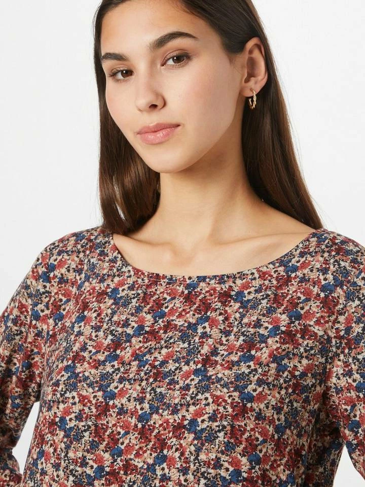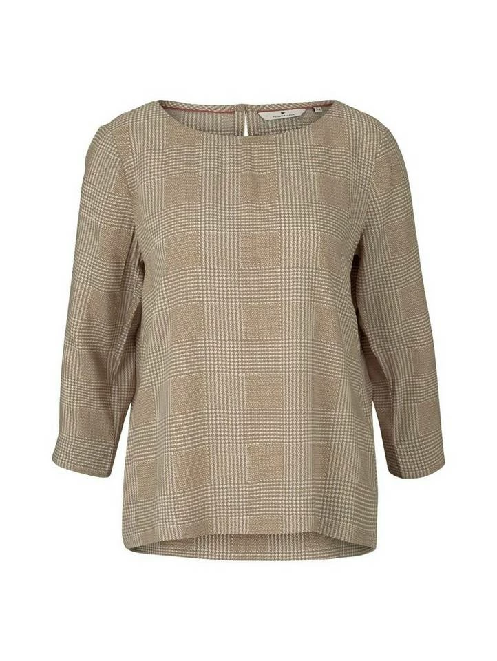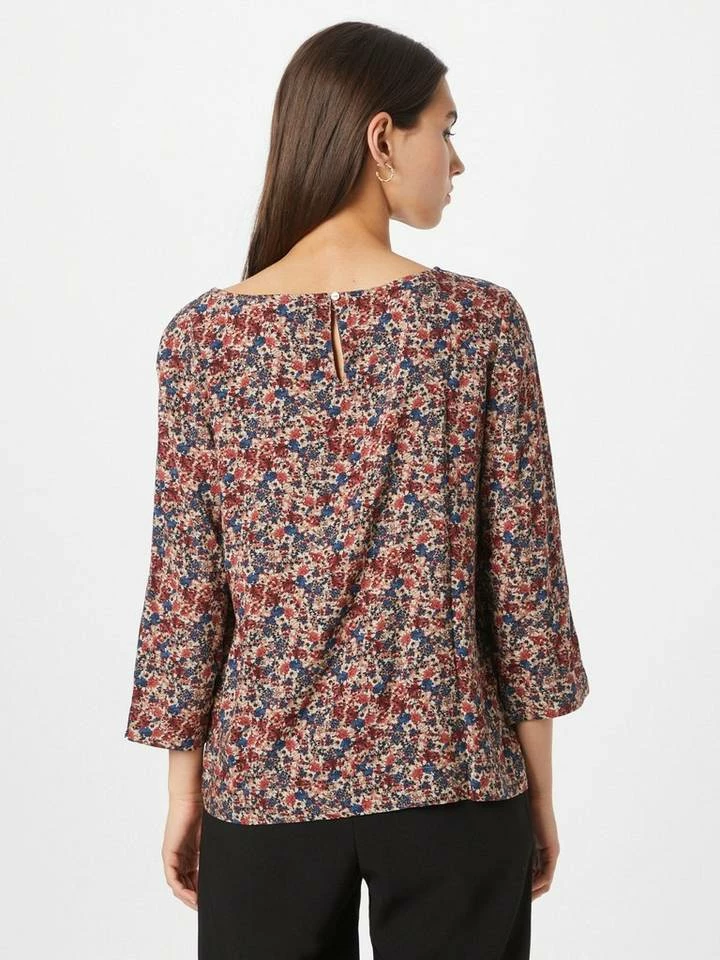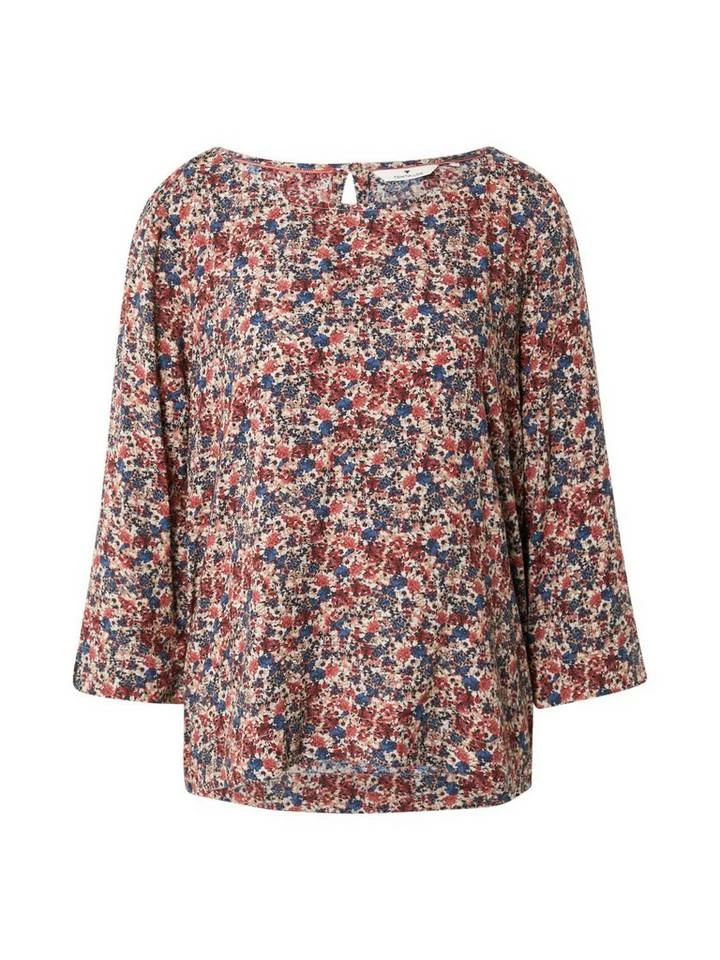 Gemusterte Bluse mit LENZING(TM) ECOVERO(TM) für Frauen (3/4 Arm mit Rundhalsausschnitt und Knopf) aus nachhaltigen und feinen Viskosefasern, kurze Seitenschlitze am Ärmel, gemustert