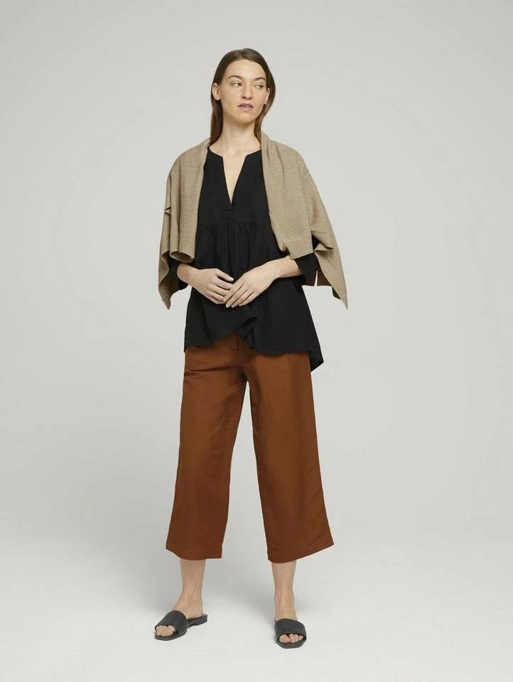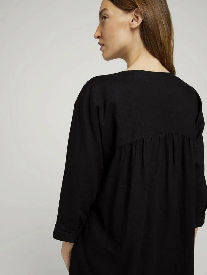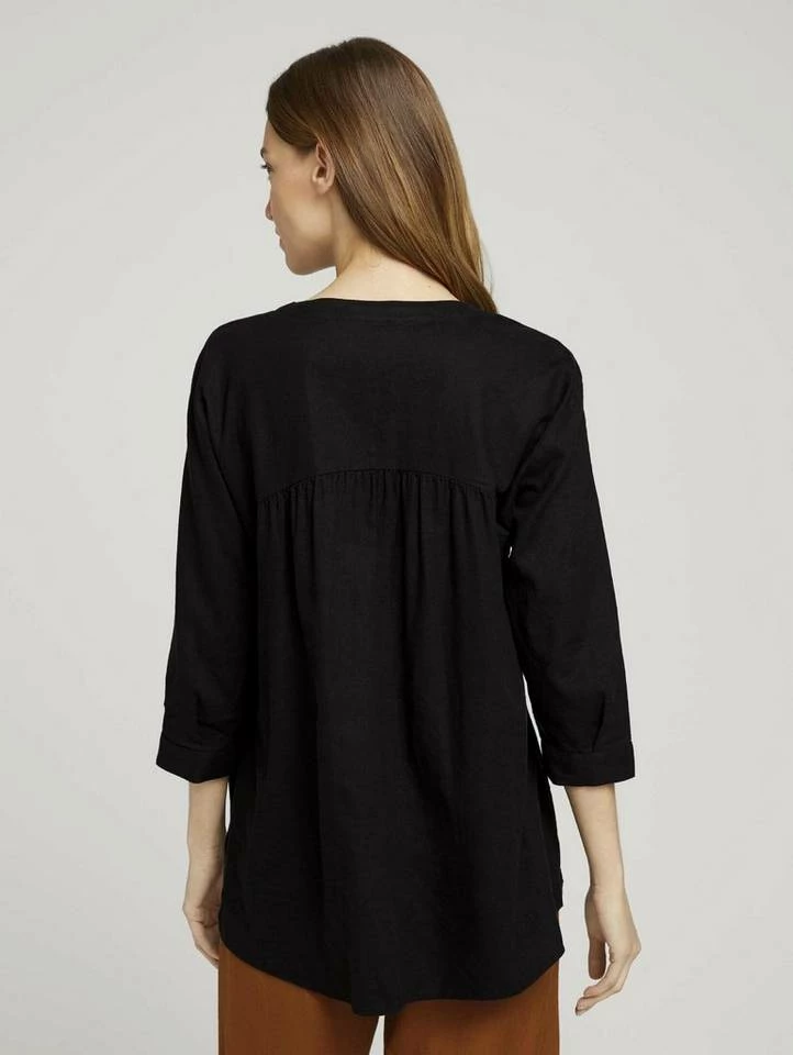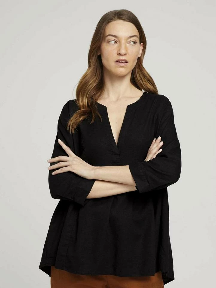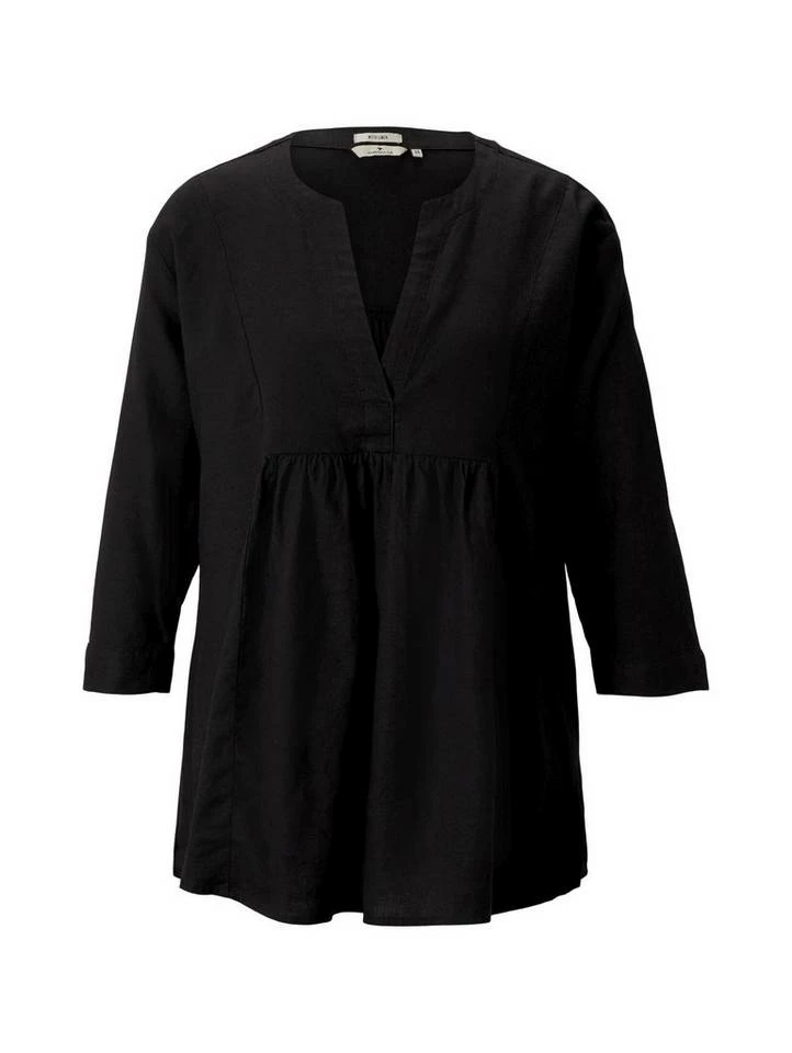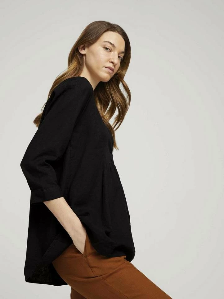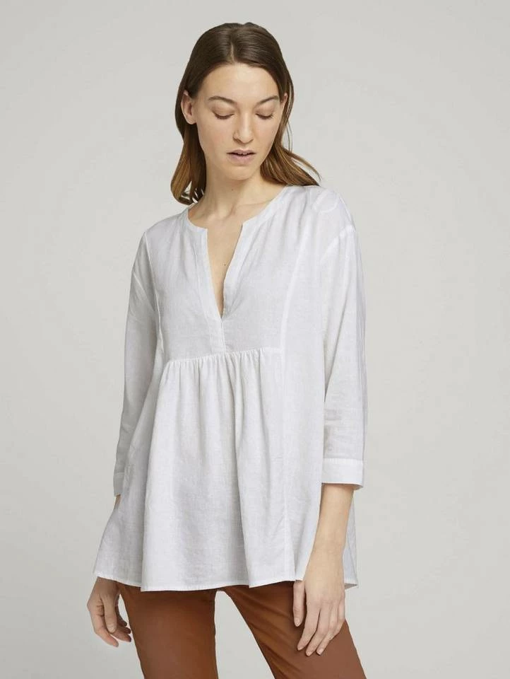 Tunikabluse mit Leinen für Frauen (3/4 Arm mit V-Ausschnitt) mit leichtem und atmungsaktiven Leinen, mit feiner Raffung auf Front und Rückseite, mit Teilungsnähten