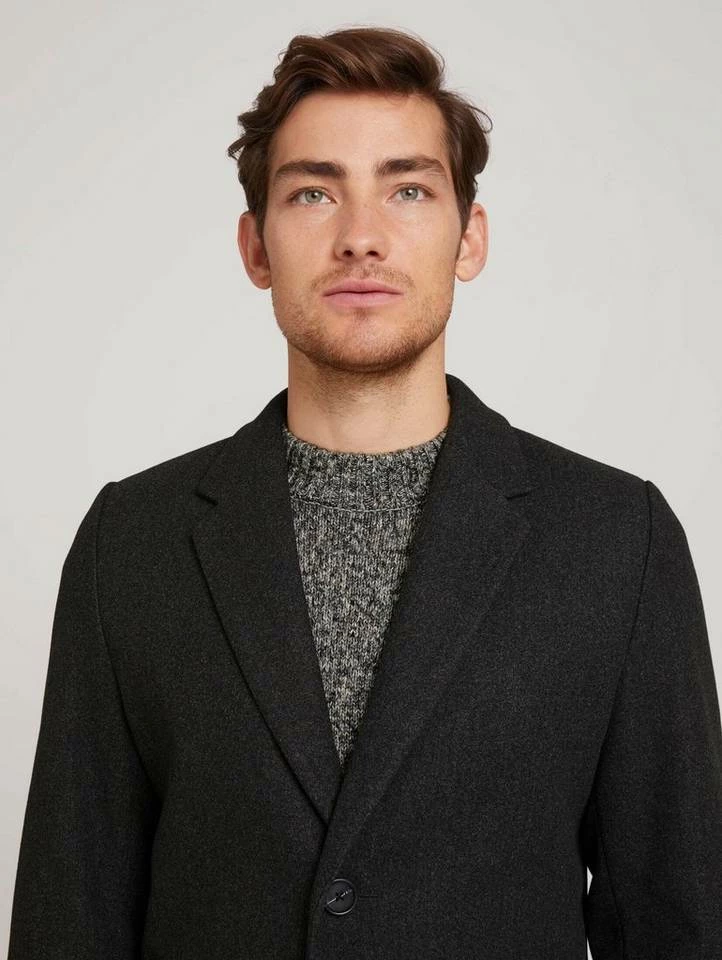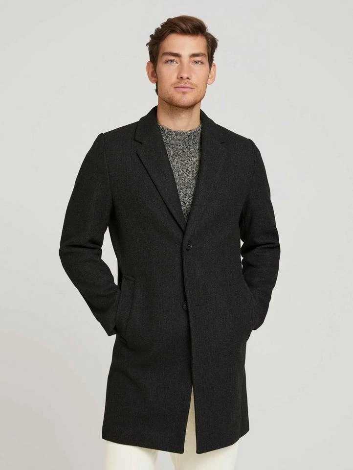 Klassischer Mantel für Männer (langärmlig mit Reverskragen und Knopfleiste) aus pflegeleichtem Gestrick, seitliche Eingrifftaschen, mit Gehschlitz hinten