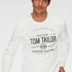 Auslauf 👍 TOM TAILOR Langarmshirt mit großem Logofrontprint Rot-blau, Dunkelblau-weiß, Weiß 🔔