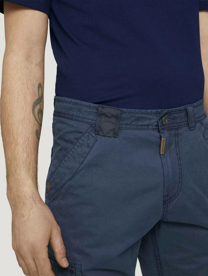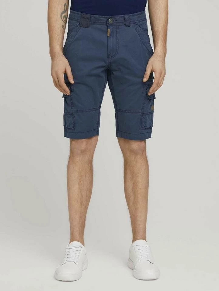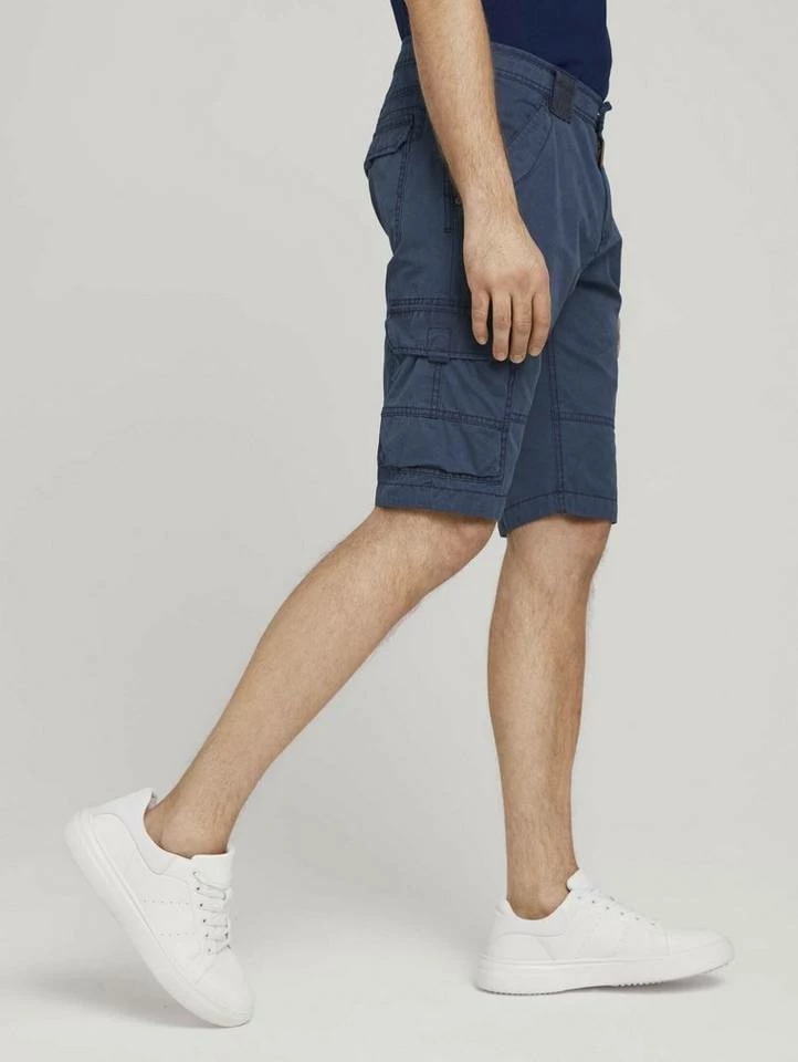 Cargo Bermuda Shorts für Männer (mit Reißverschluss und Knopf) aus dichtem Canvas, seitliche Eingrifftaschen, Pattentaschen mit Druckknopf hinten und seitlich am Bein