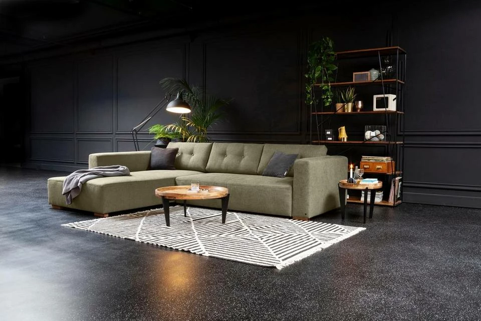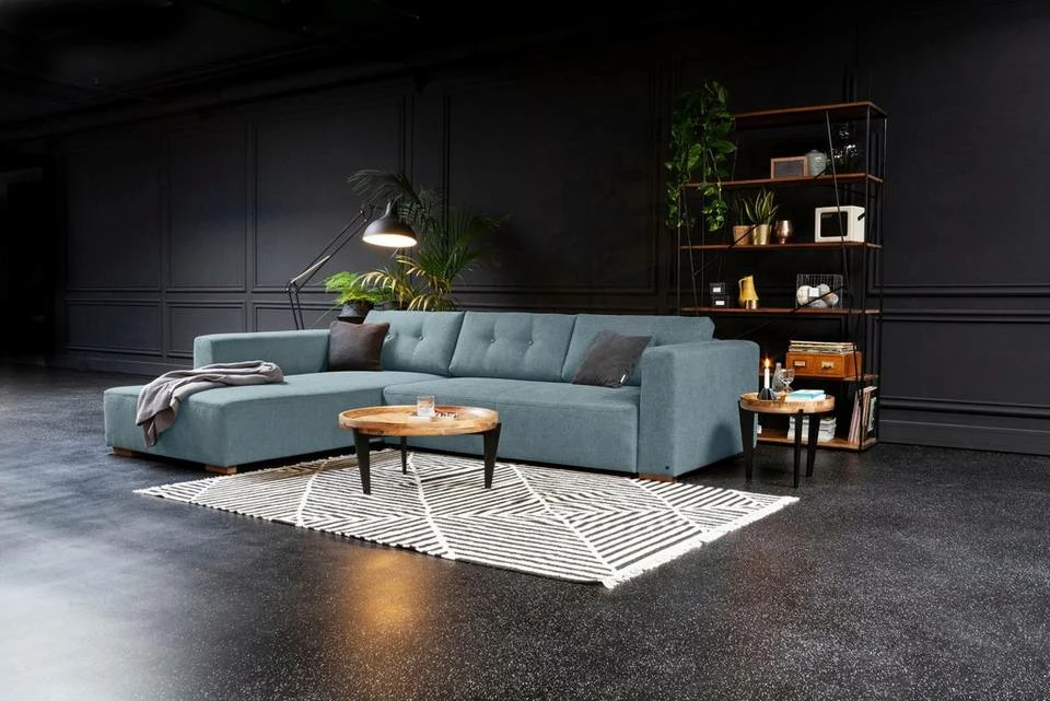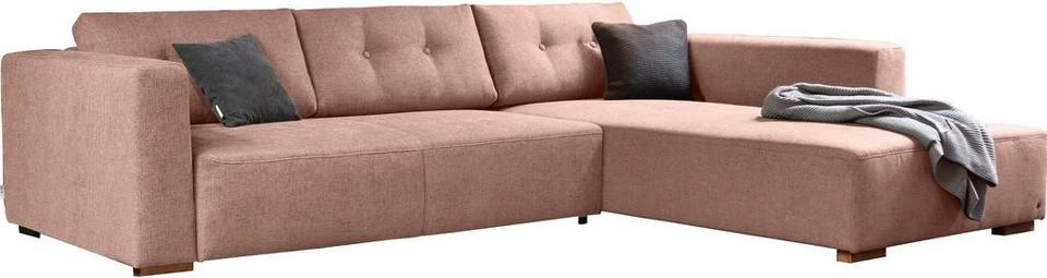 Das Ecksofa »HEAVEN CHIC M« von TOM TAILOR im trendigen Design sorgt für ein gemütliches Flair im Zuhause. Moderne Farben sowie Rückenkissen mit einer edlen Knopfheftung bestimmen das Erscheinungsbild. Abgerundet wird die Gestaltung durch schlichte Füße in Holzoptik. Erhältlich mit Recamiere für die linke oder rechte Seite, lässt sich die Polsterecke in sämtliche Raumkonzepte integrieren. Ausgestattet ist sie mit einem bequemen Federkern, der einen angenehmen Sitzkomfort ermöglicht. Auf Wunsch lässt sich die Eckcouch mit einer Bettfunktion auswählen, sodass sie in eine zusätzliche Liegefläche umgewandelt werden kann. Kissen- und Deckenbezüge lassen sich im praktischen Bettkasten ordentlich aufbewahren. Eine gute Wahl für eine zeitgemäße Wohnzimmereinrichtung: das Ecksofa »HEAVEN CHIC M« von TOM TAILOR im trendigen Design.