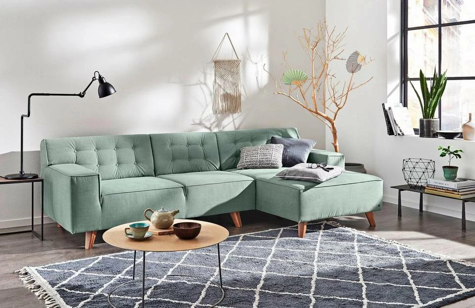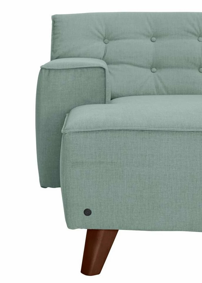 - Mit auffälligen Holzfüßen, wahlweise wengefarben, nussbaumfarben oder Buche natur