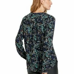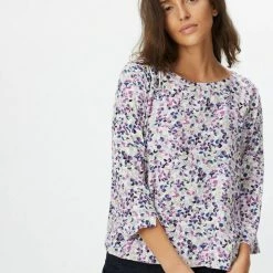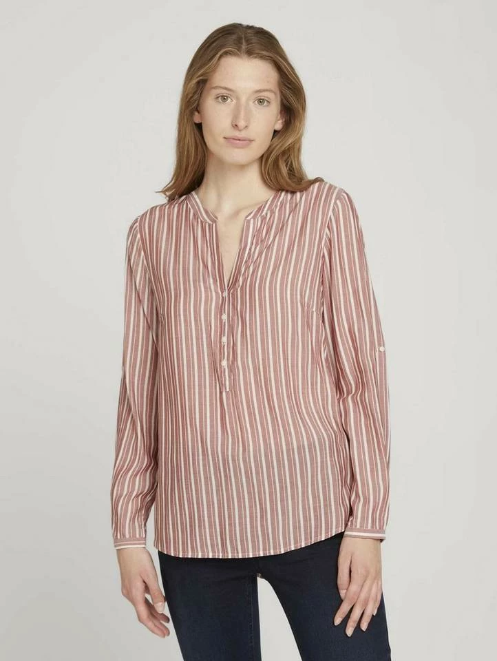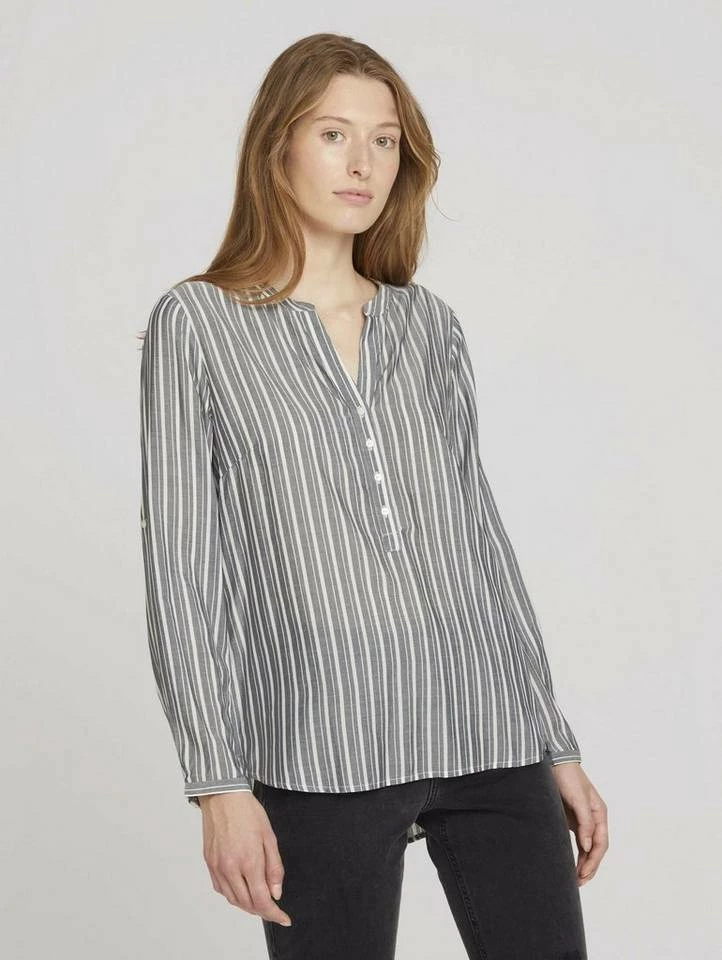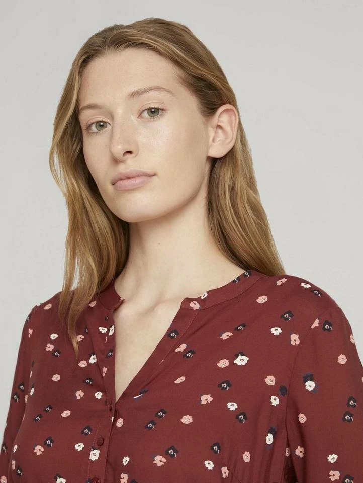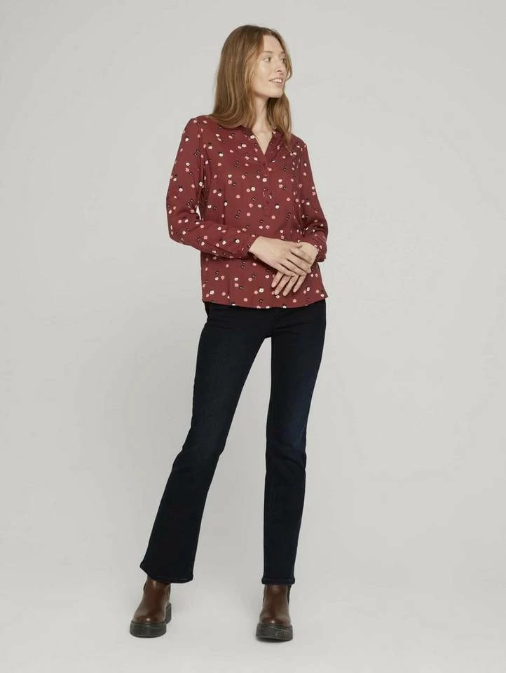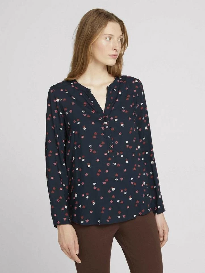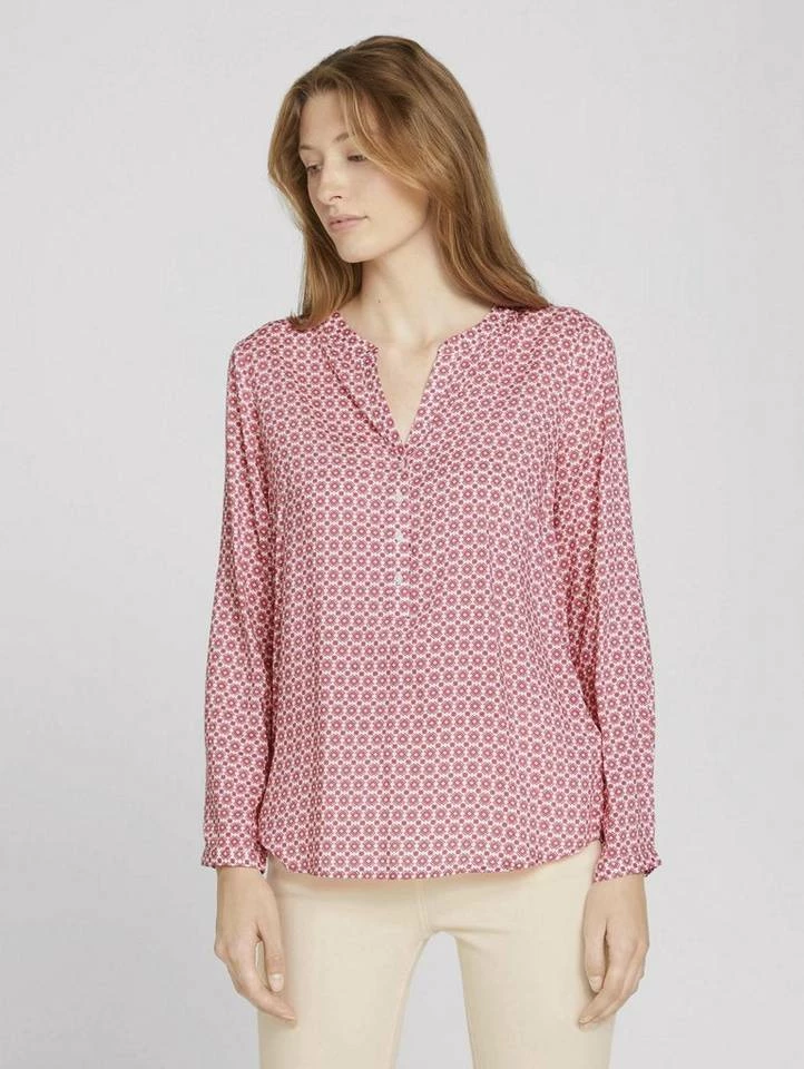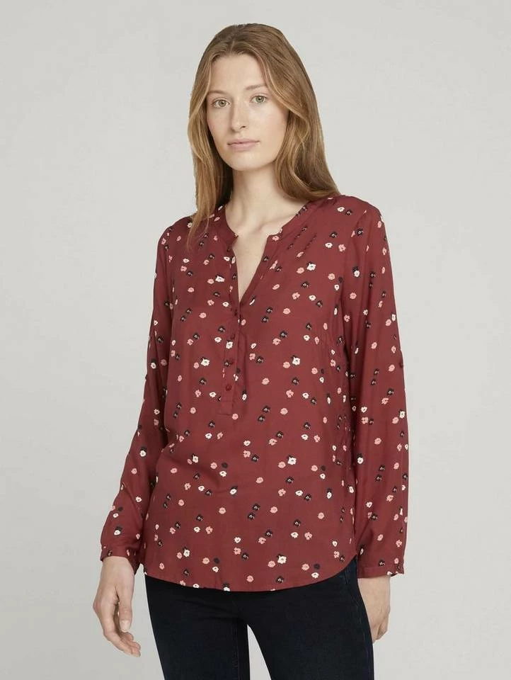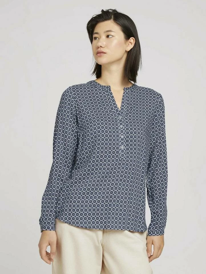 Gemusterte Bluse mit TENCEL(TM) Modal für Frauen (langärmlig mit Henleyausschnitt) aus softem und umweltschonenden Modal, gemustert, Lange Ärmel mit Turn-Up-Option