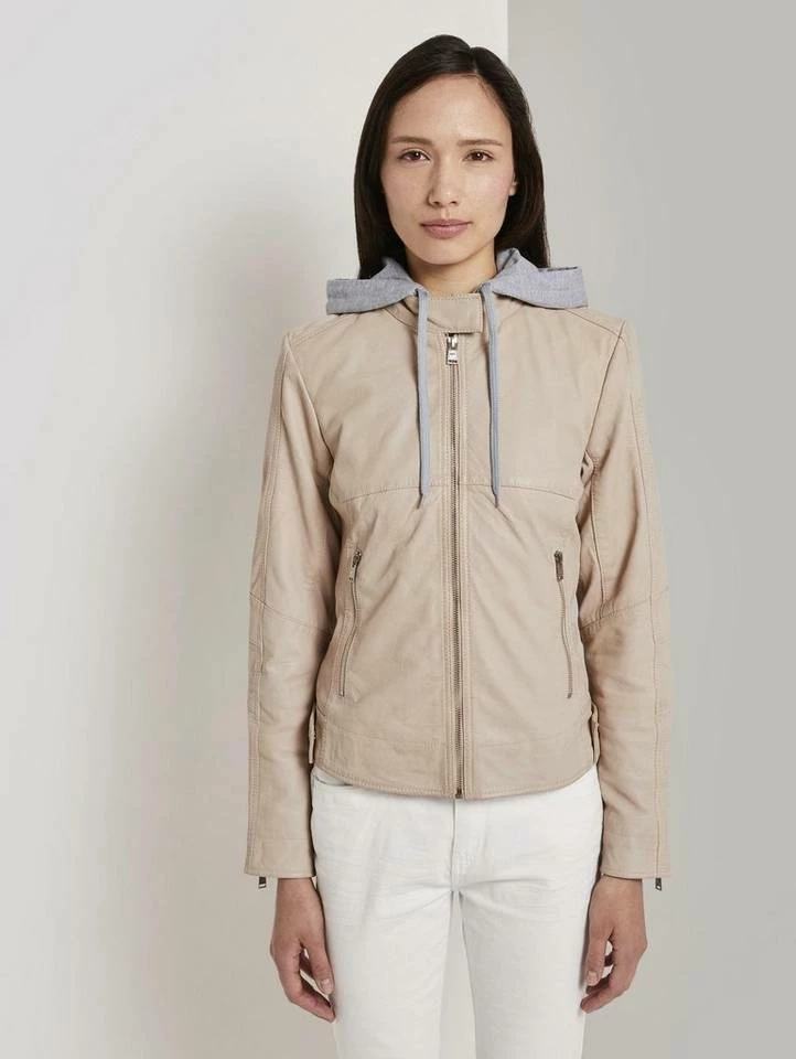 Lederjacke im Biker-Stil für Frauen (Kragenschließe mit Druckknopf) aus hochwertigem Leder, mit zwei seitlichen Reißverschluss-Taschen