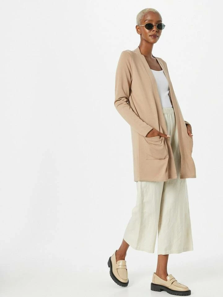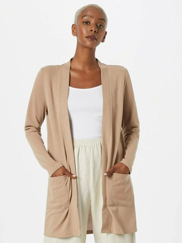 Langer Jersey Cardigan für Frauen (langärmlig und nach vorne offen) aus dehnbarem und bequemen Jersey, mit Eingrifftaschen, unifarben