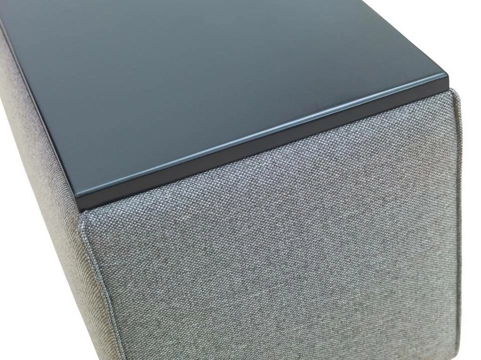 - Gepolsterter Tisch in modernen Trendfarben mit schwarzer Tischplatte