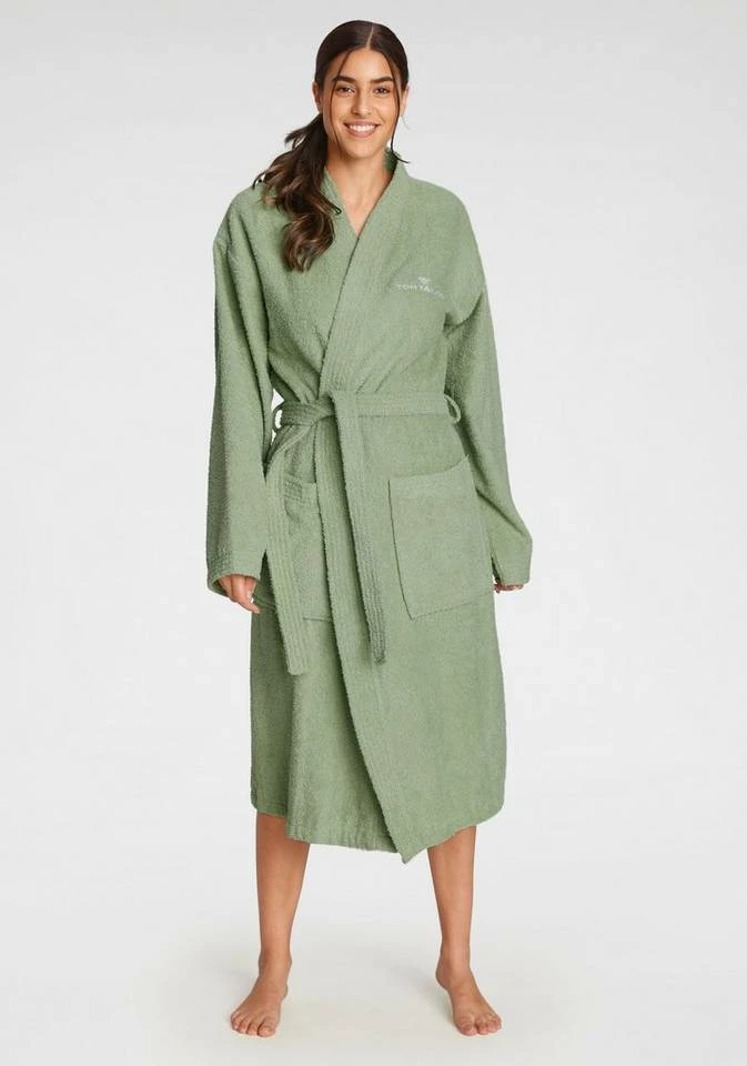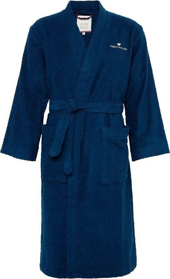 Einfach rundum wohlfühlen – das geht mit dem Bademantel »Kimono« aus dem Hause Tom Tailor. Der unifarbene Bademantel überzeugt als lässiges, bequem geschnittenes Kleidungsstück für Sie und Ihn. Erhältlich in verschiedenen Farben und Größen, kann der Mantel individuell ausgewählt werden. Er verfügt über einen Gürtel und seitlich platzierte Taschen, was zum einen modisch wirkt und zum anderen für die Unterbringung kleinerer Utensilien einfach praktisch ist. Die Logostickerei setzt einen weiteren modischen Akzent. Der Mantel ist pflegeleicht und lässt sich in der Maschine bei 60°C reinigen. Für den Trockner ist er ebenfalls geeignet. Schick und von schöner, weicher Qualität: der Bademantel »Kimono« von Tom Tailor.