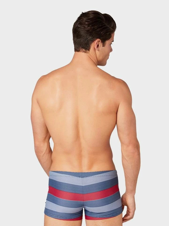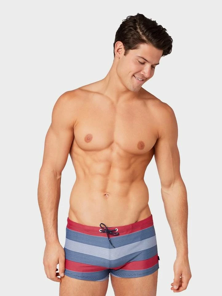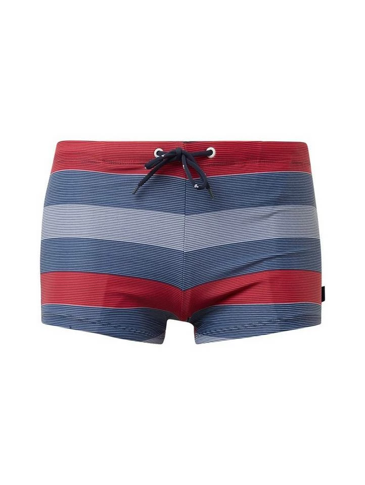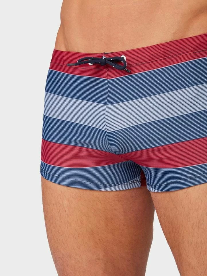 Gestreifte Badehose für Männer (gestreift, elastischer Bund mit Kordelzug) mit Logo-Flag seitlich, ganzflächig gestreift