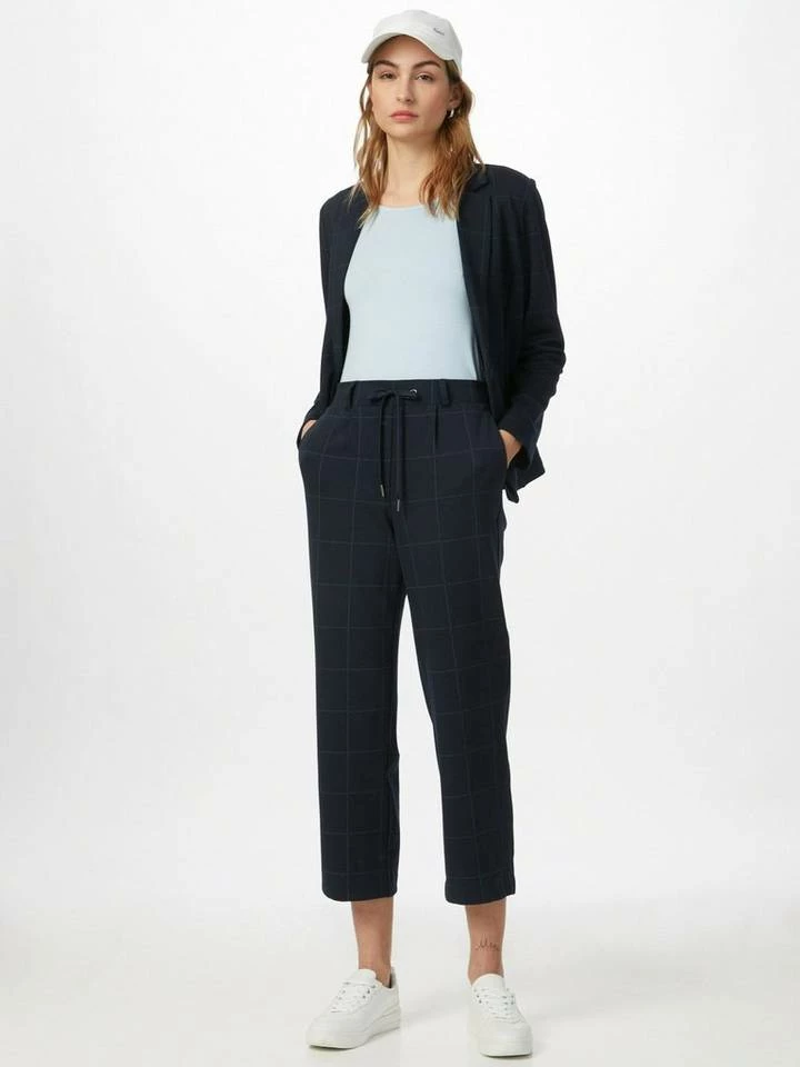 Karierte Hose im Loose Fit für Frauen (mit elastischem Bund und integriertem Kordelzug) aus dickem und dehnbaren Jersey, kariert, seitliche Eingrifftaschen
