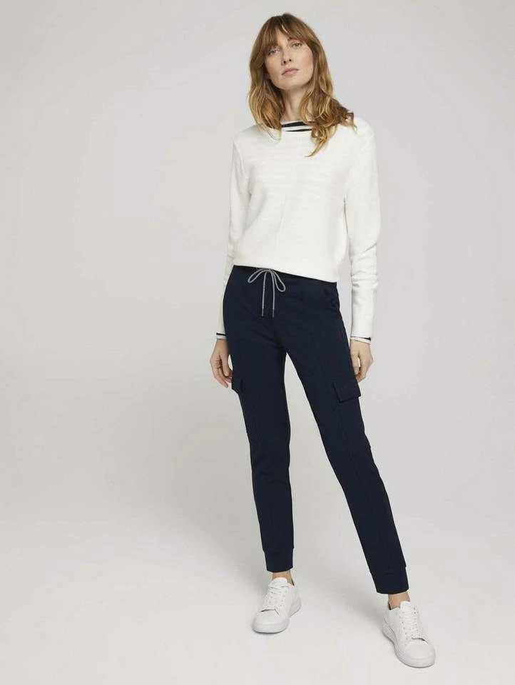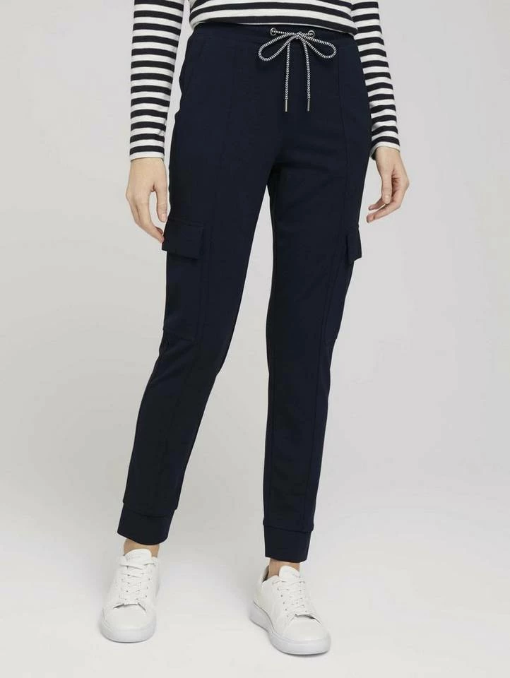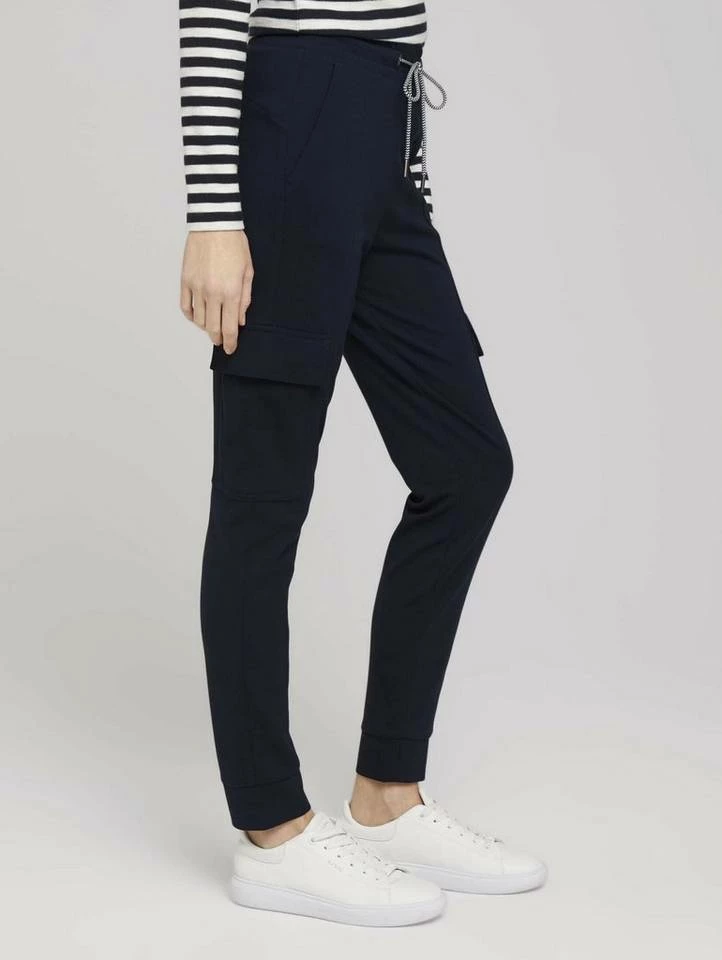 Jersey Cargohose im Loose Fit für Frauen (verstellbarer Kordelzug durch den Bund) aus elastischem und bequemen Jersey, seitliche Eingrifftaschen und Pattentaschen am Bein