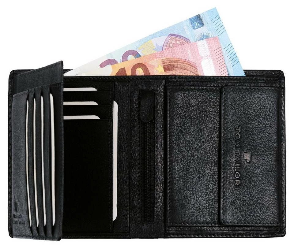 Herren-Geldbörse im Hochformat aus weichem Echtleder. Die stilvolle horizontale Ziernaht und die einfache Logo-Prägung runden den Style ab. Der eingebaute RFID Schutz verhindert das ungewollte Auslesen von Kreditkartendaten durch Dritte und schützt so vor Identitäts-Diebstahl. Innen 7 Kartenfächer, 2 Scheinfächer, 1 Netzfach, 4 Steckfächer, 1 Reißverschlussfach, 1 Münzfach mit Druckknopf und zusätzlichem Extrafach. Maximale Außenmaße (Länge x Höhe x Tiefe): 12 x 10 x 2,5 cm