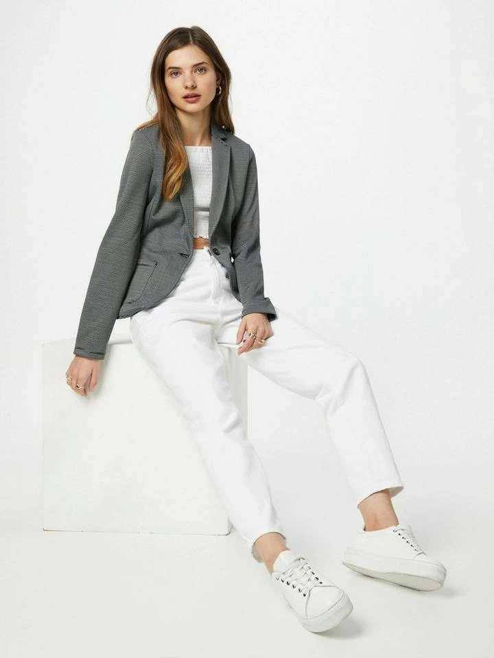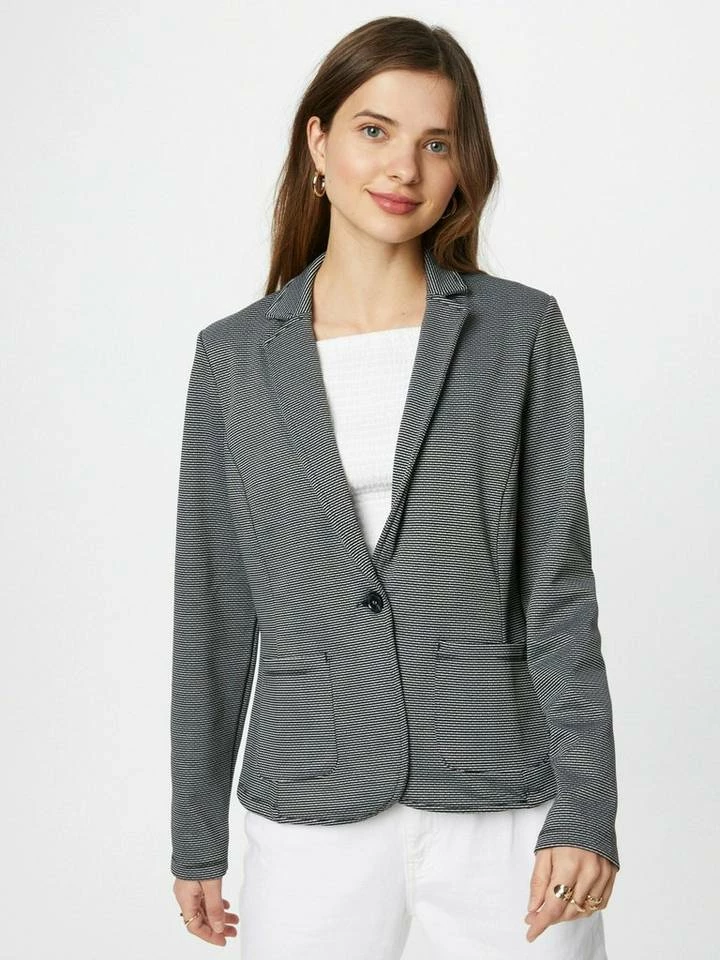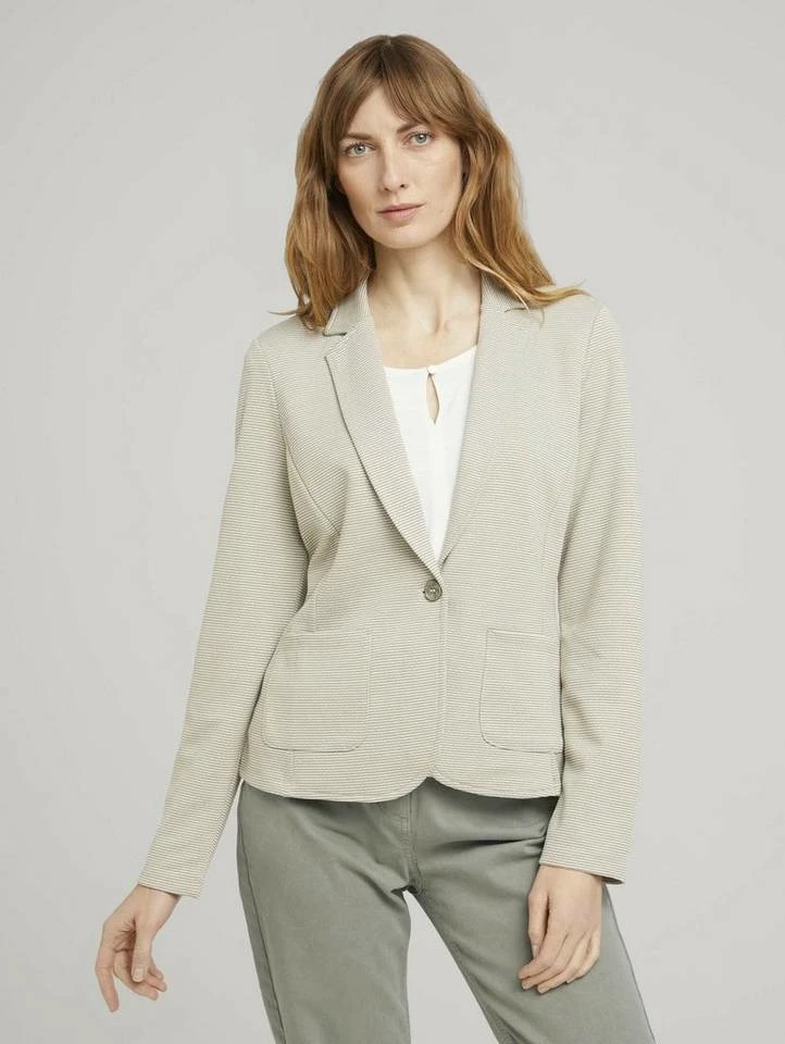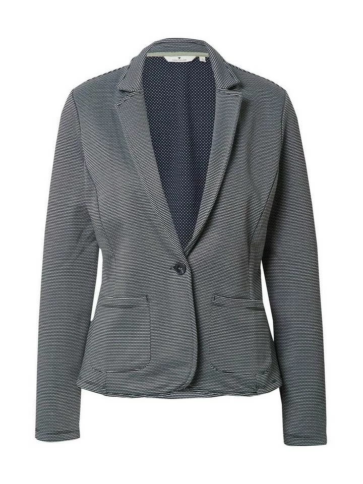 Weicher Blazer mit Streifen für Frauen (langärmlig mit Reverskragen und Knopfleiste) aus dehnbarem und strukturiertem Jacquard, mit Streifenmuster außen und gepunktet innen, aufgesetzte Taschen auf der Frontseite