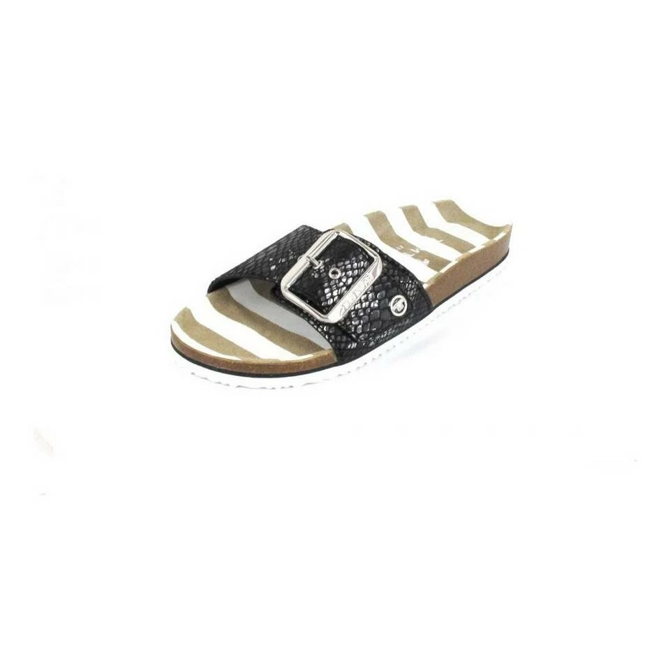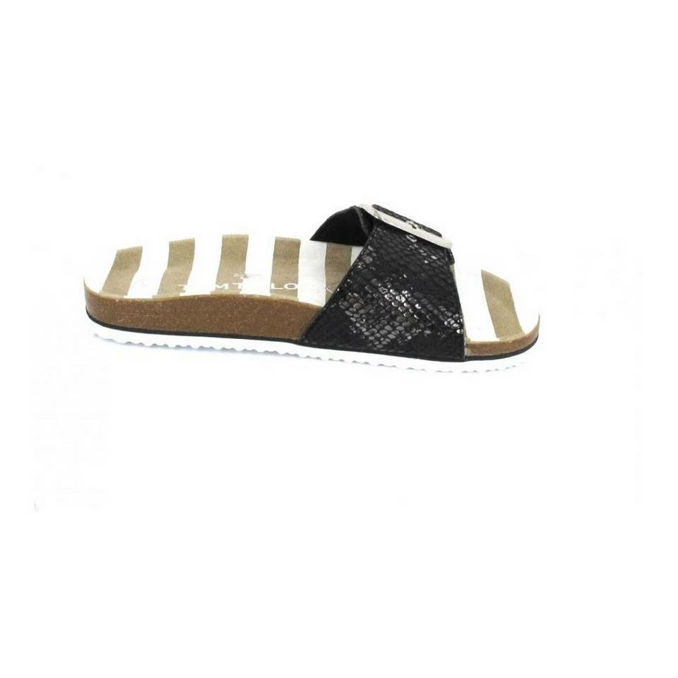 – schicke Damen-Pantolette aus dem Hause Tom Tailor – Obermaterial in Reptil-Prägung – das gestreifte Leder-Fußbett macht den Schuh zu einem echten Hingucker – perfekte Anpassung durch die verstellbare Schnalle – rutschhemmende Laufsohle