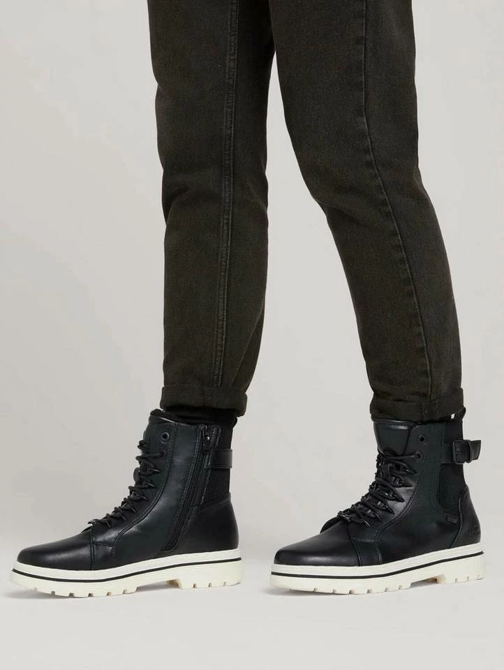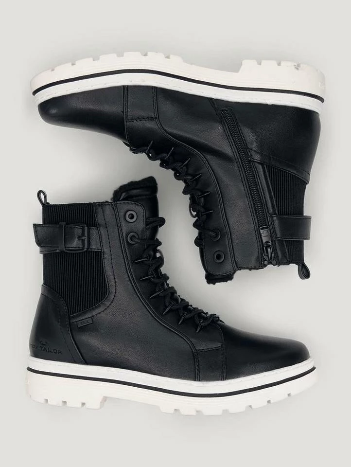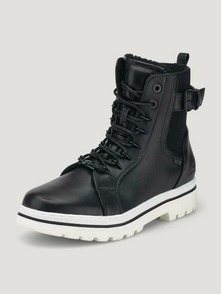 Stiefel mit Schnürsenkel für Frauen (mit Schnürsenkeln) aus hochwertigem Kunstleder, Schaftweite ca. 11,5cm, Schafthöhe ca. 14cm, Absatzhöhe ca. 4,2cm, Absatzform: Blockabsatz, mit thermoplastischer Gummisohle