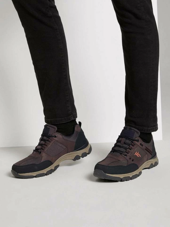 Trekkingsschuhe für Männer (mit Schnürsenkeln zum Binden) aus wasserabweisendem Oberstoff, Schafthöhe ca. 13cm und Schaftbreite ca. 12,5cm, mit thermoplastischer Gummisohle, Absatzhöhe ca. 4cm, mit Wechselfußbett