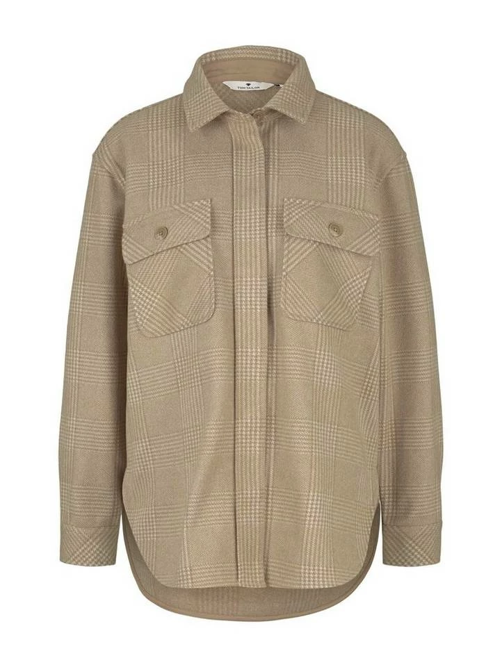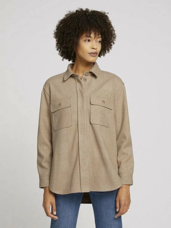 Karierte Hemdjacke für Frauen (langärmlig mit Kentkragen und Knopfleiste) aus pflegeleichtem Gestrick, kariert, mit Brusttaschen