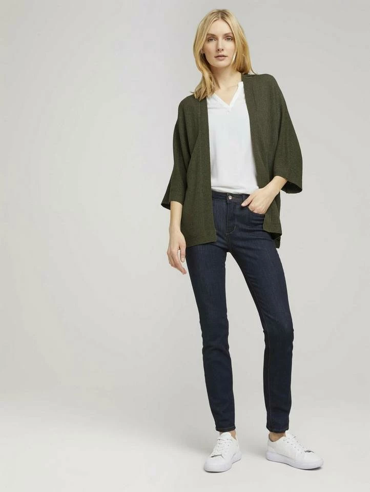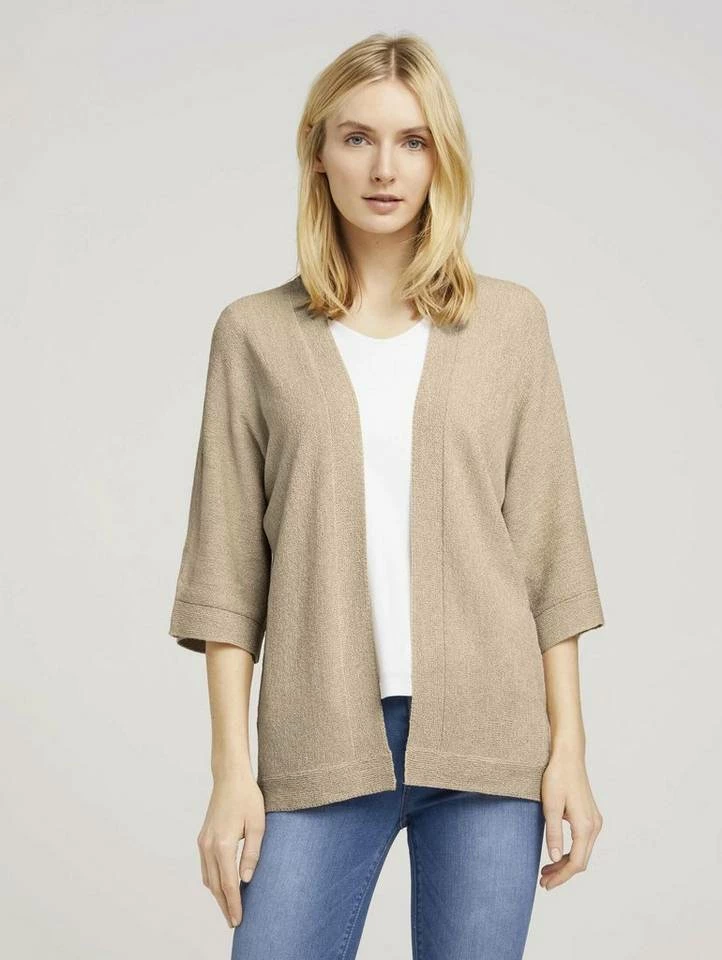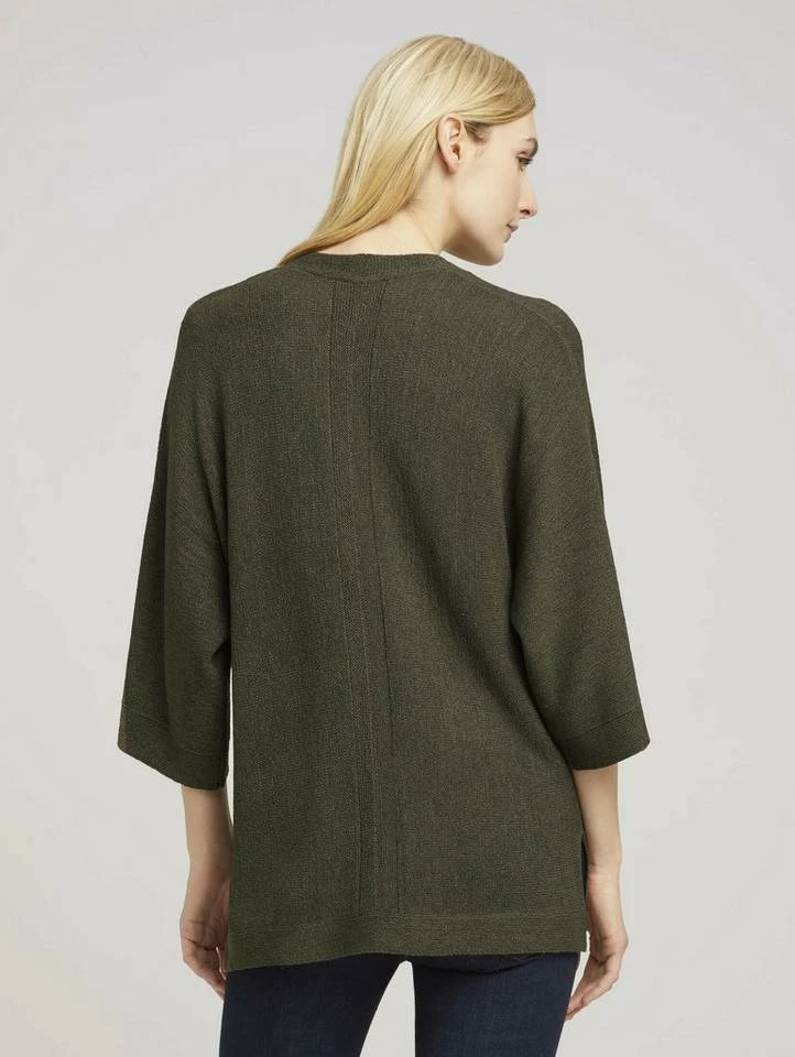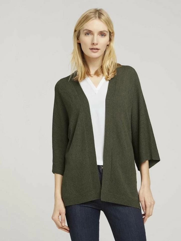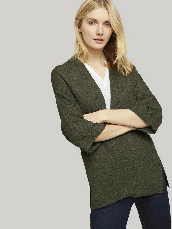 Cardigan mit weiten Ärmeln für Frauen (7/8 Arm mit Schalkragen und nach vorne offen) aus pflegeleichtem Gestrick, mit Fledermausärmeln, kurze Seitenschlitze