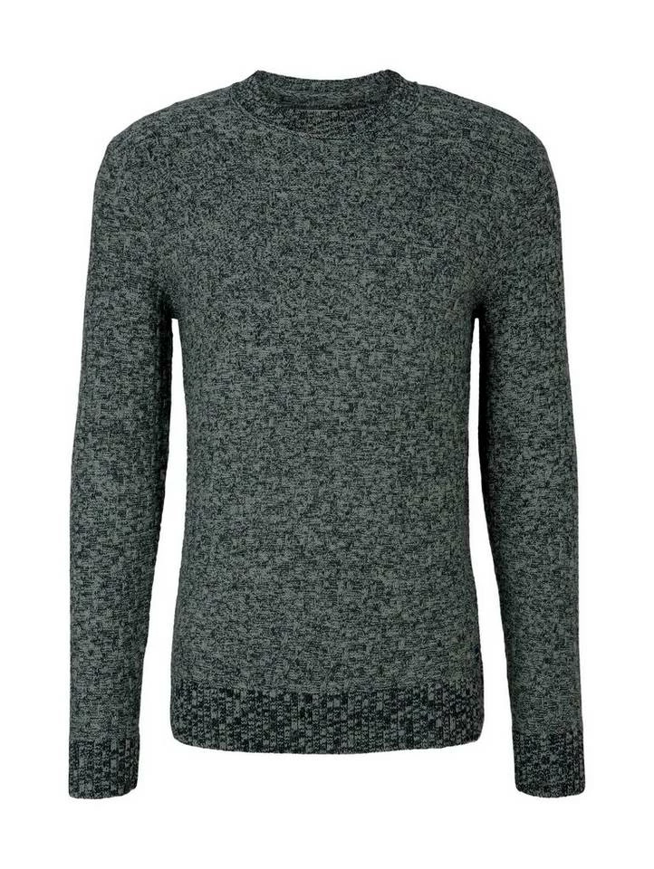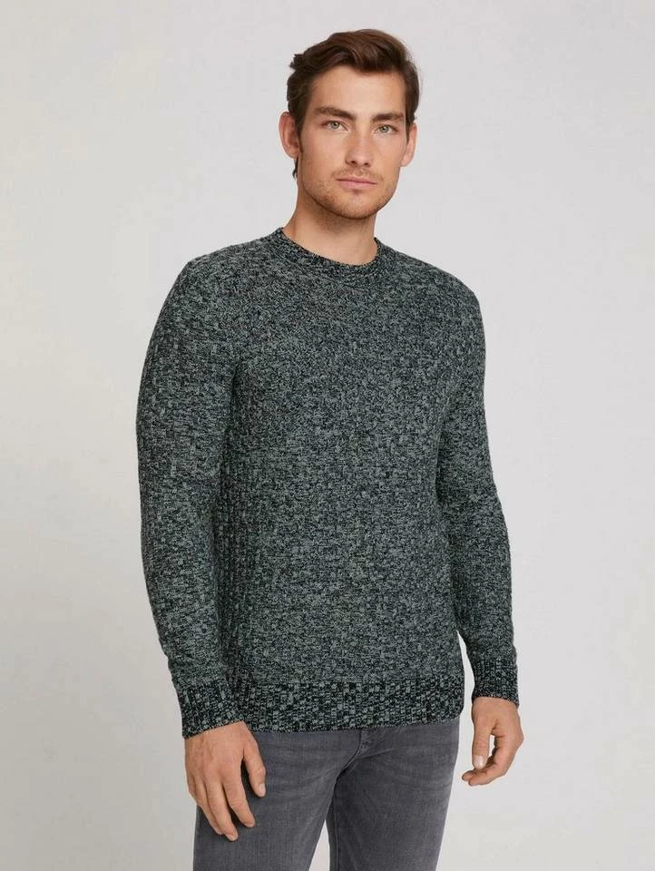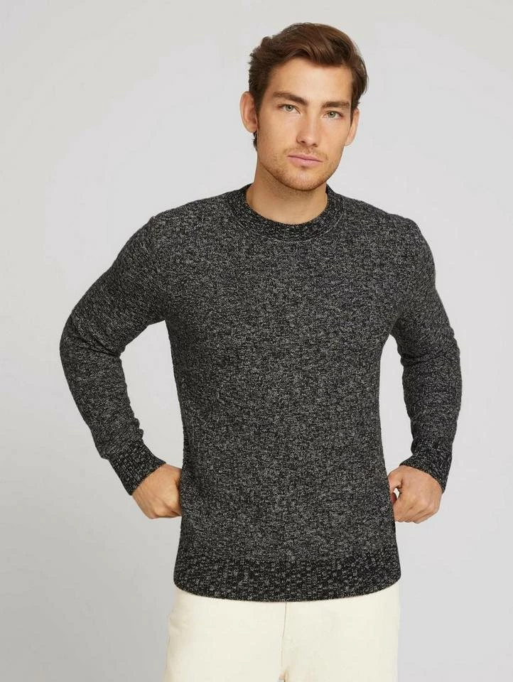 Strickpullover in Melange-Optik für Männer (langärmlig mit Rundhalsausschnitt) aus atmungsaktiver und weicher Baumwolle, in Melange-Optik, strukturiert, mit geripptem Saum