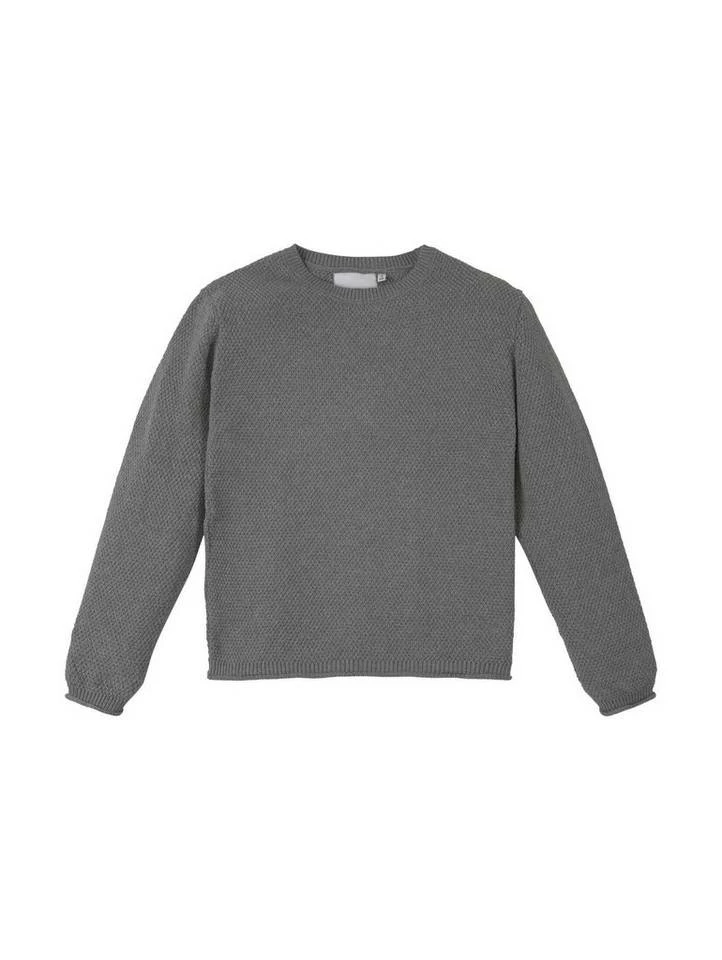 unifarbender Strickpullover für Jungen (langärmlig mit Rundhalsauschnitt) unifarbend, gerollte Saumkante am Ärmel