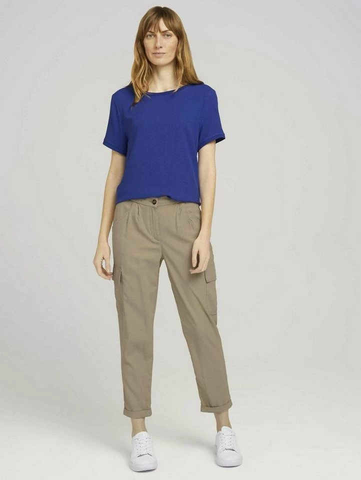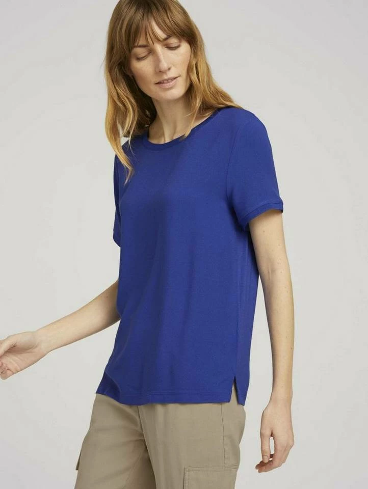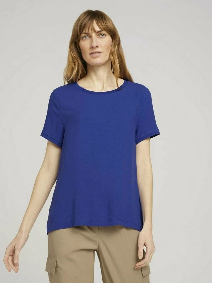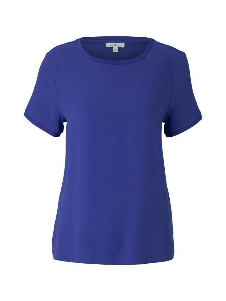 T-Shirt im Materialmix für Frauen (kurzärmlig mit Rundhalsausschnitt) im Materialmix: Vorderteil und Ärmel aus Chiffon, Rückenteil aus dehnbarem Jersey, mit Rippbündchen an Ausschnitt und Ärmel, kurze Seitenschlitze