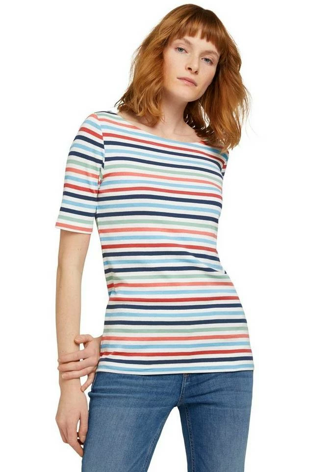 Das T-Shirt von TOM TAILOR macht alles möglich — ob dezent, cool oder peppig. Dieses Shirt hat einen U-Boot-Ausschnitt und ist hüftlang sowie schmal geschnitten, sodass dein Oberkörper dezent in Szene gesetzt wird.